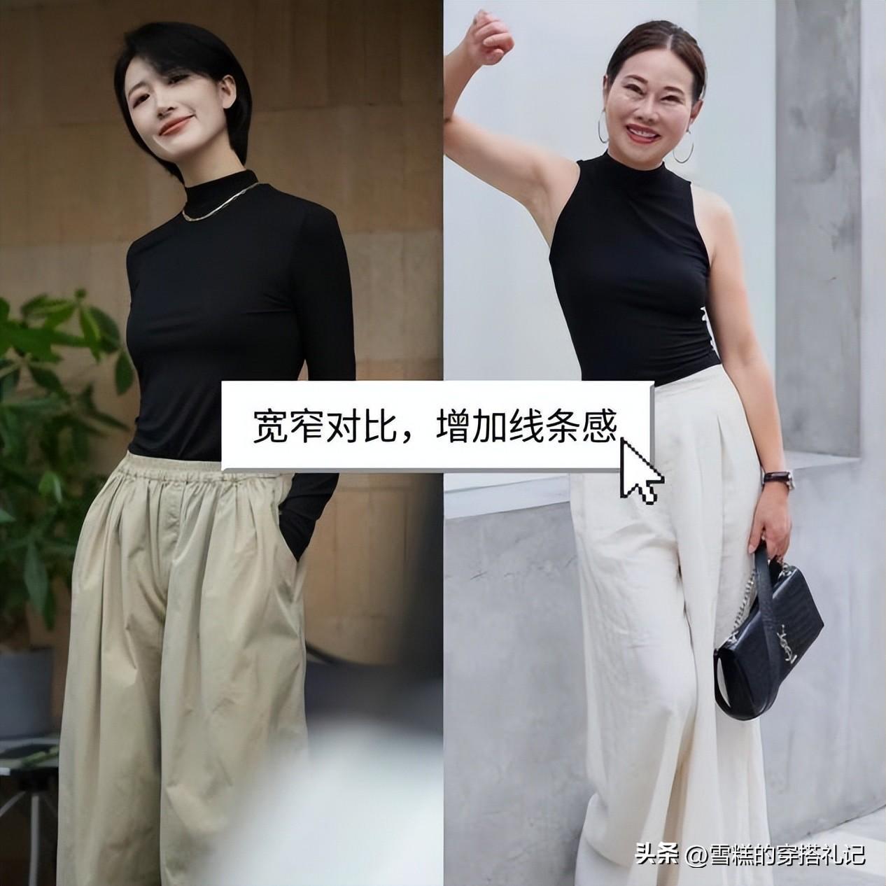 想要更好的凸出身材的優勢,那麼就需要重點關注上下的鬆緊對比,如果上半身偏胖,那麼就選擇稍微修身一些的半身裙或者長褲,用上寬下窄的組合來達到目的。但是記得不要選擇太廉價的材質,越挺括穿起來越好。