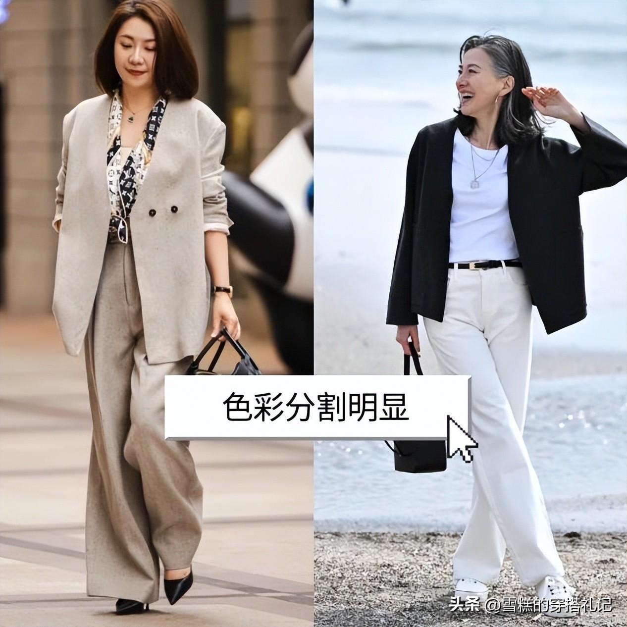 比如可以通過上淺下深的顏色拉伸整體的比例,使得穿搭更加吸睛洋氣。