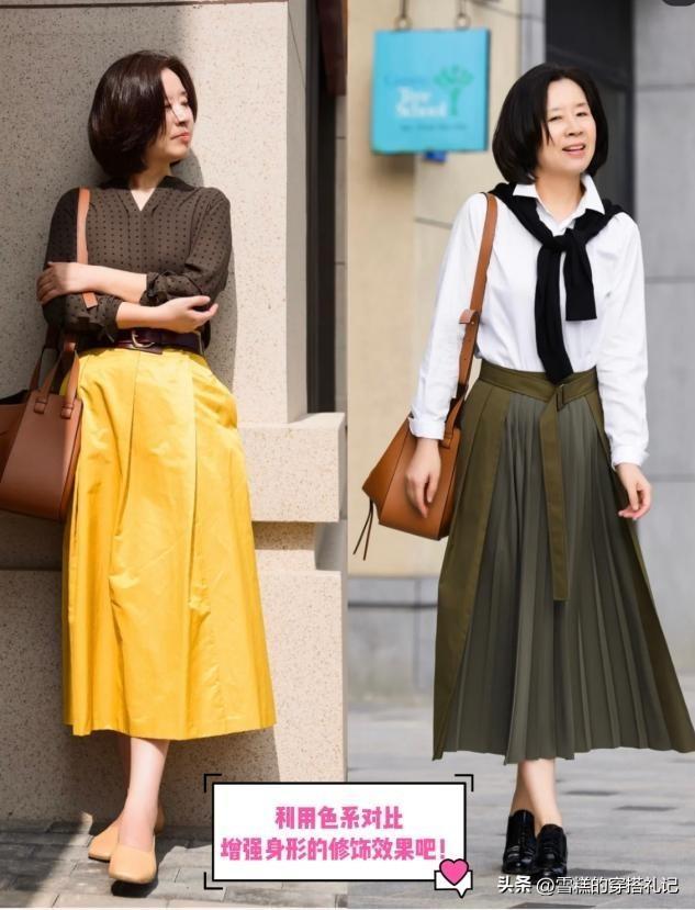 不管選擇什麼型的裙裝進行搭配,其實最終的目的都是爲了讓我們的身材狀態和氣質都保持的比較理想從而呈現,那麼在這一點上就推薦大家就可以利用一些色系的組合來進行比例分割,例如像上短下長的標準比例,又或者是輪廓走向的對比效果。