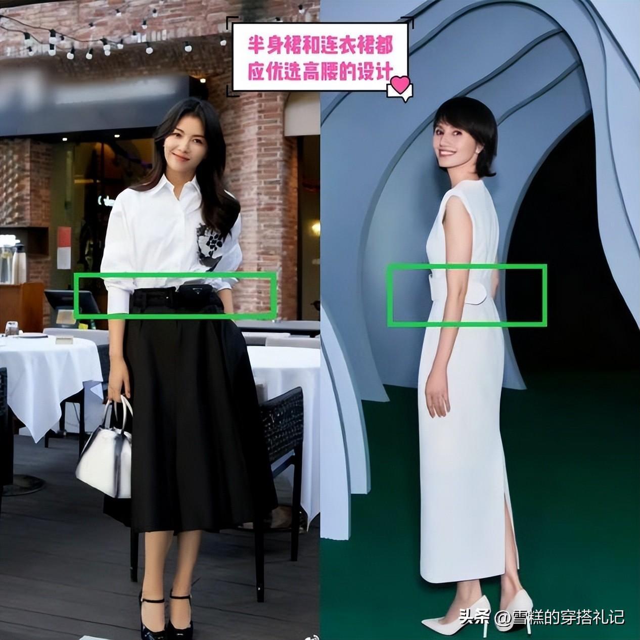 且不管選擇搭配的是連衣裙還是半身裙的系列,只要它是長款的設計都一定要優先於搭配,能夠提高我們腰身比例線水平位置的設計類型。例如像高腰的版型又或者是在腰部的位置有着收腰設計效應的一些小設計。