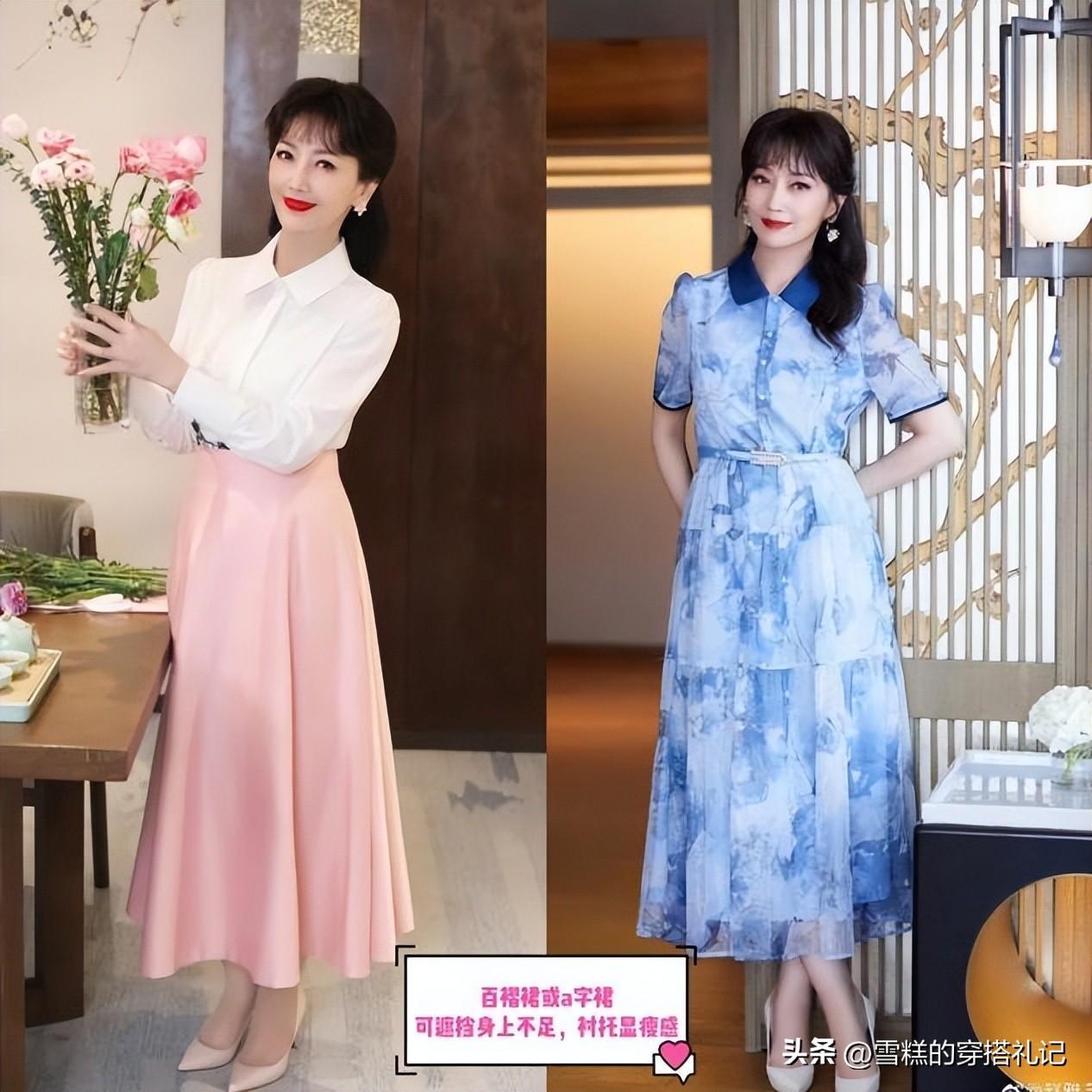 其實搭配的越簡約越能夠襯托出來你本身的品位感,能夠將一款簡約又大氣的單品穿得非常好看,也是非常重要的,尤其是在中年階段的時候,建議各位女性可以向她們學習借鑑起來。長裙的版型一定是比較簡約且輪廓的走向很好看,也對於我們的身材有修飾力的類型。