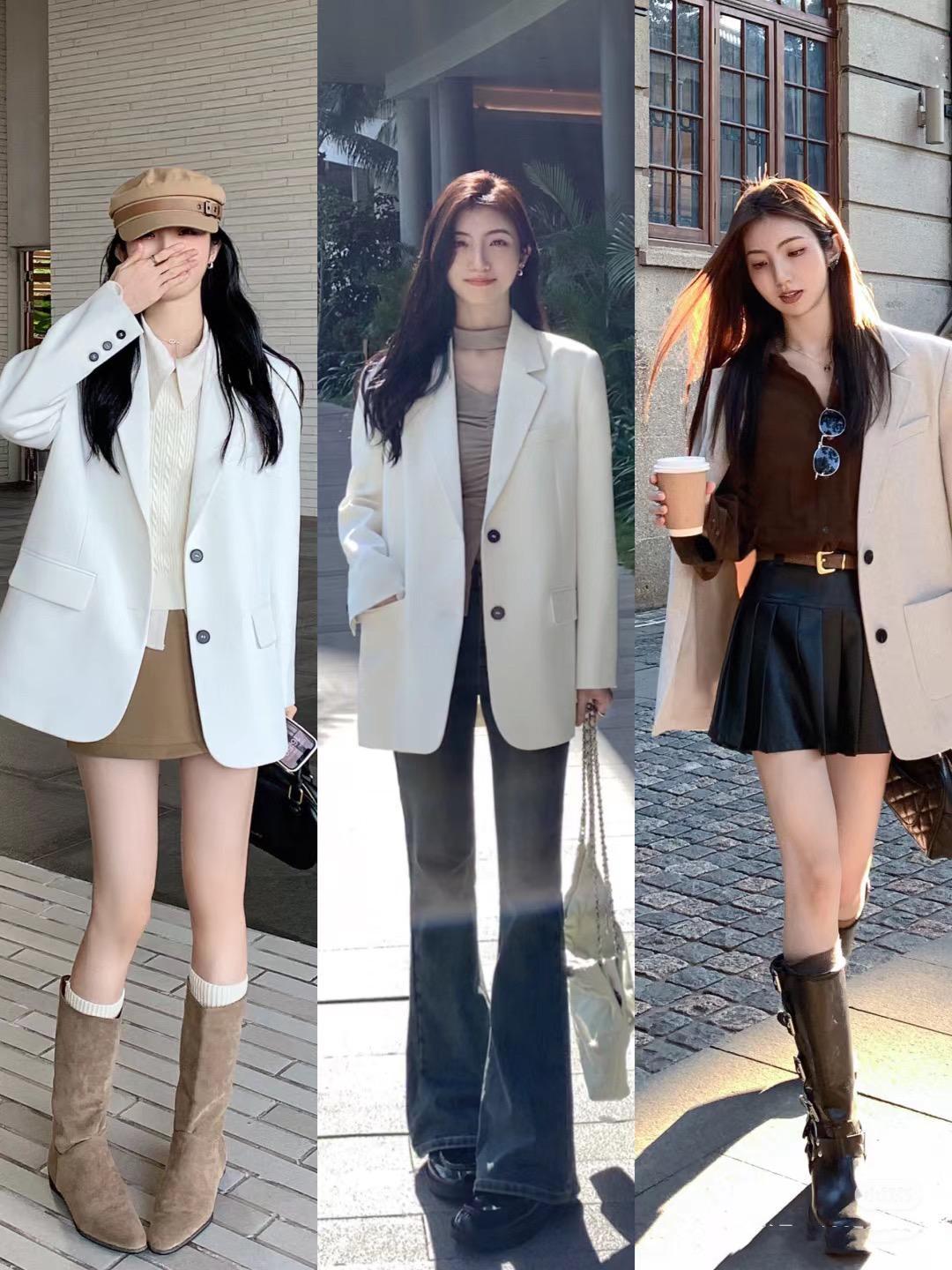 可以選擇一種及膝的長靴,露出膝蓋的線條、讓我們的穿搭更輕盈。及膝長靴,可以配寬鬆西服,這種下衣失蹤的搭配也是又美又颯。