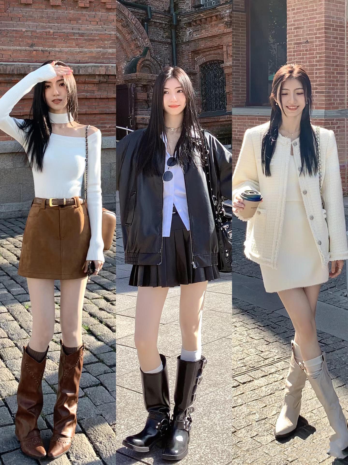 要說秋天的韓系穿搭,一定超不了短裙+長靴的組合,這種既時髦又醒目、還可以修飾身材的組合,就像爲輕熟女性量身定製一般。