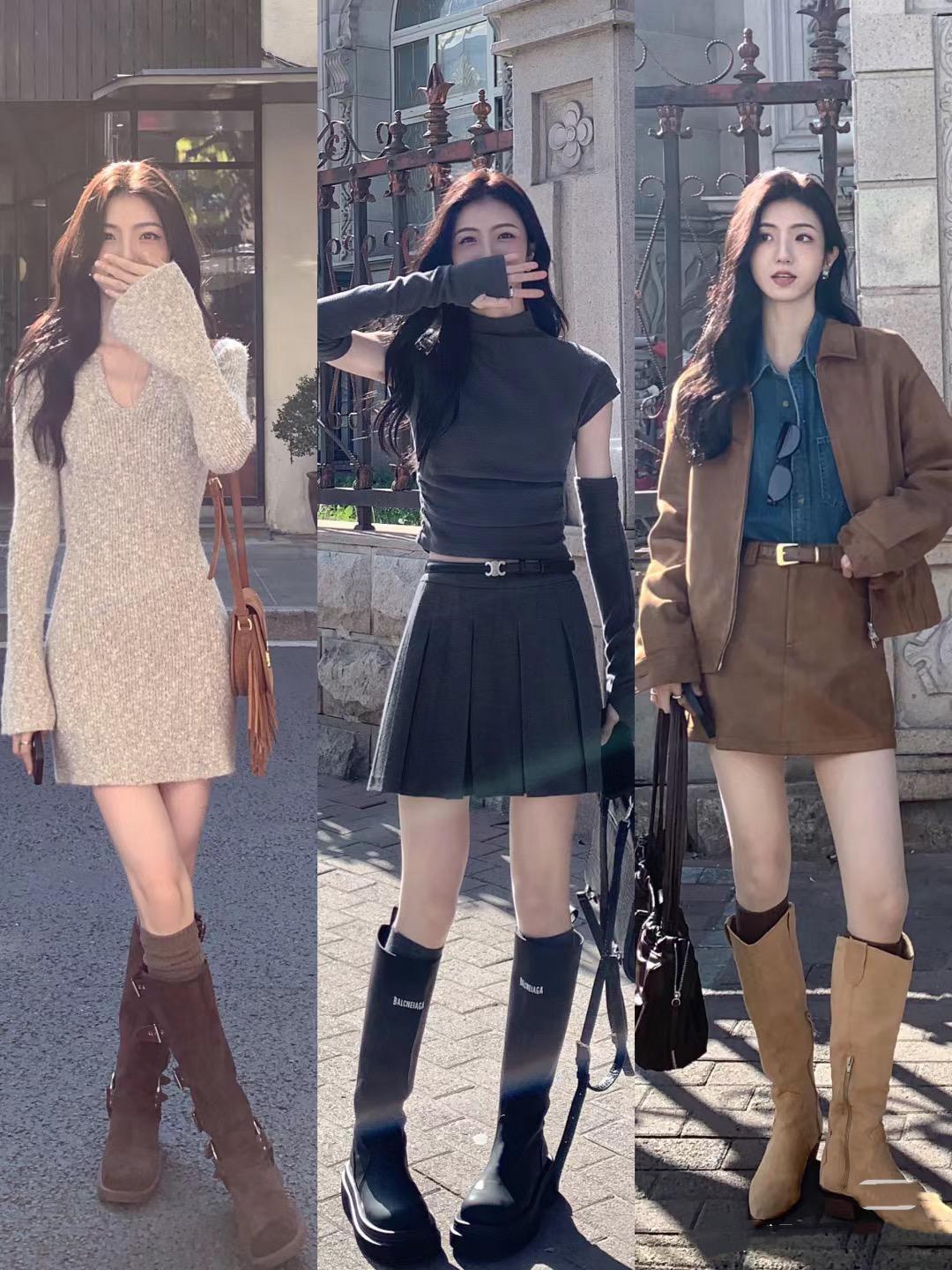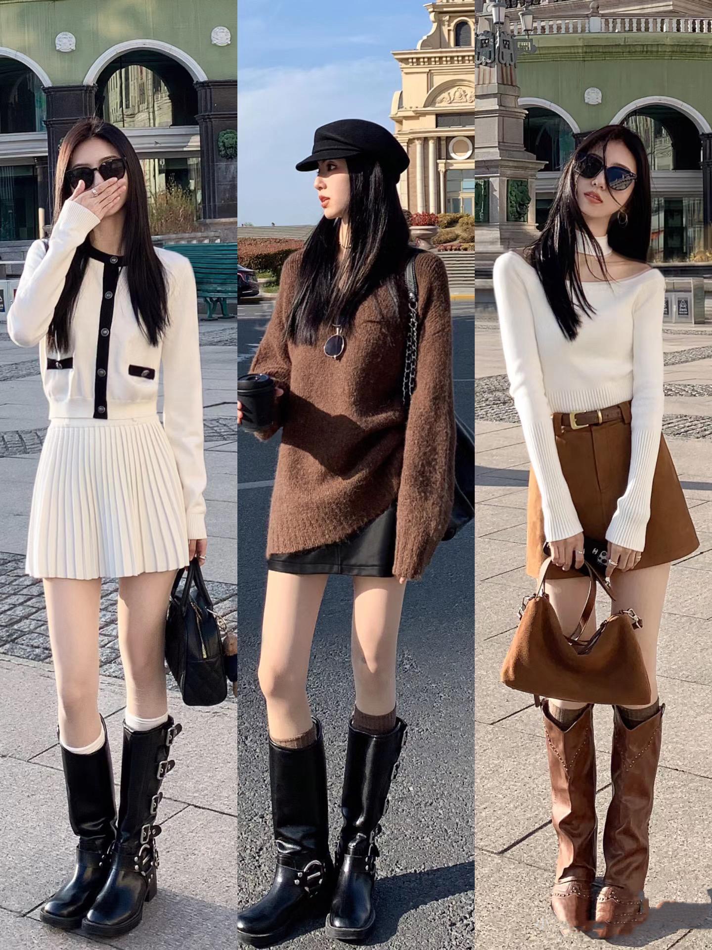 不管是針織衫、還是半身裙,都能夠以獨特的視角、表現出更輕盈高挑的身材比例。秋天裏配一雙長靴,既可以修飾腿型、又給時尚感加分。