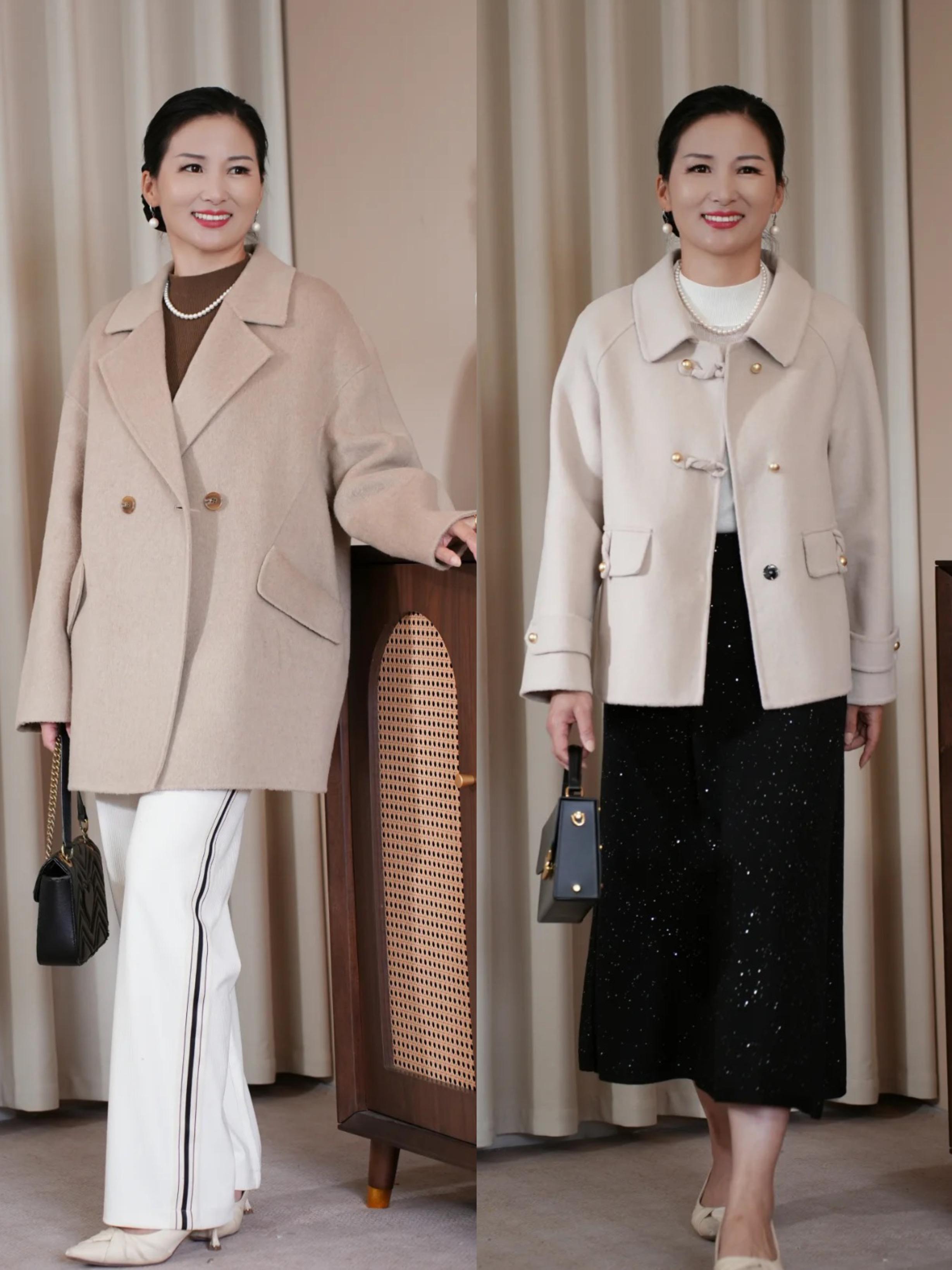 天氣冷一點的時候,也可以穿着毛呢外套。小廓形的毛呢外套,具有更大包容性。繭型毛呢外套能掩蓋腹部、臀部的肉感,更顯身材勻稱。