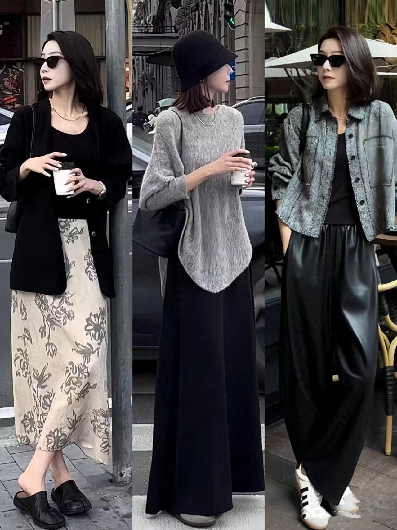 經典的黑白灰,最是低調優雅顯氣質。這不過是時髦範,既不挑人又更容易拿捏。我們可以嘗試黑白配色/或者黑灰配色,很有雅緻,也比較顯瘦,屬於大方不乏味的穿搭思路。