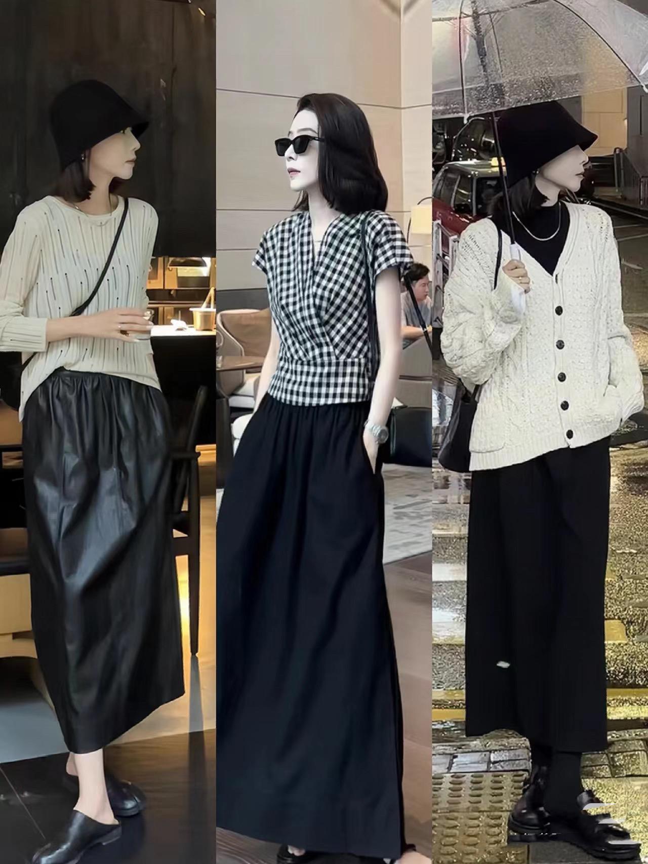 黑色的針織衫、打底衫、甚至小外套,在40、50歲女人的日常穿搭裏都很常見,寬鬆黑毛衣繫腰帶就更利落洋氣,也很顯瘦。
