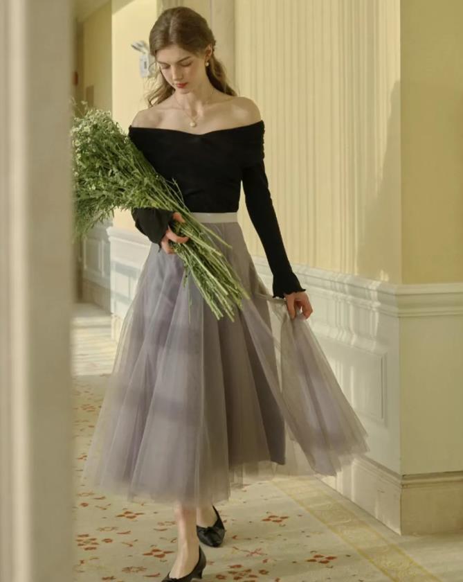 現在這個天氣,對於老廣人來說,也只是微冷而已,所以,針織+半裙的組合最合適了,黑色一字肩針織衫,搭配半身網紗半裙,這樣的搭配看起來也太溫柔氣質了,很簡約又大方的一套,能將屬於大女人的魅力和自信呈現出來,精緻且不失女人味。