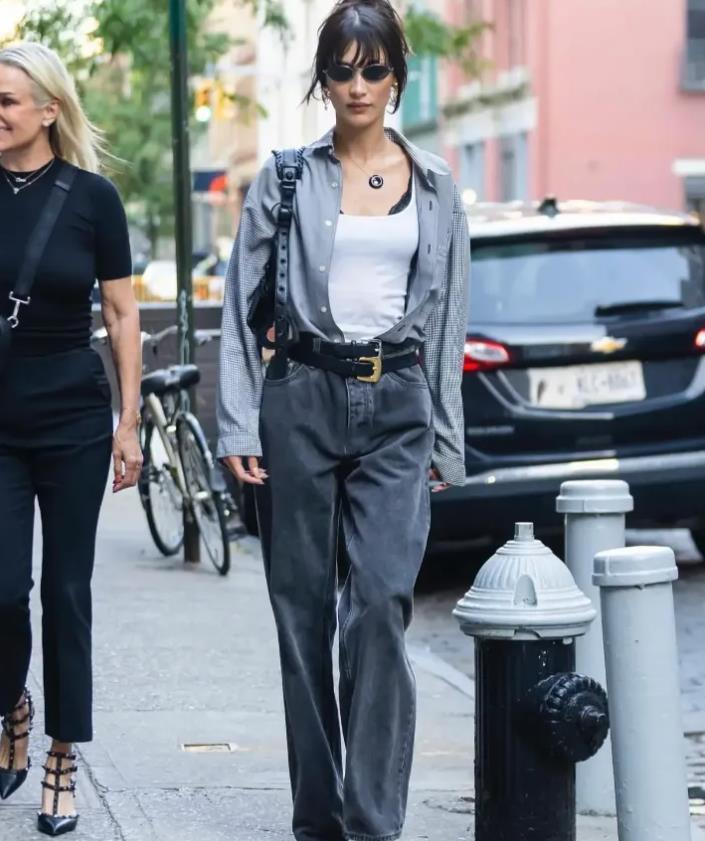 這種深灰色牛仔褲,可不比黑色的差,與淺灰色襯衫相配,內搭再選擇一件白色t恤,這幾種經典色組合在一起,可太時髦和高級了。整個着裝充滿了獨立和大方,也不失個人魅力,搭配一雙白色運動鞋吧,盡顯乾淨和利落。