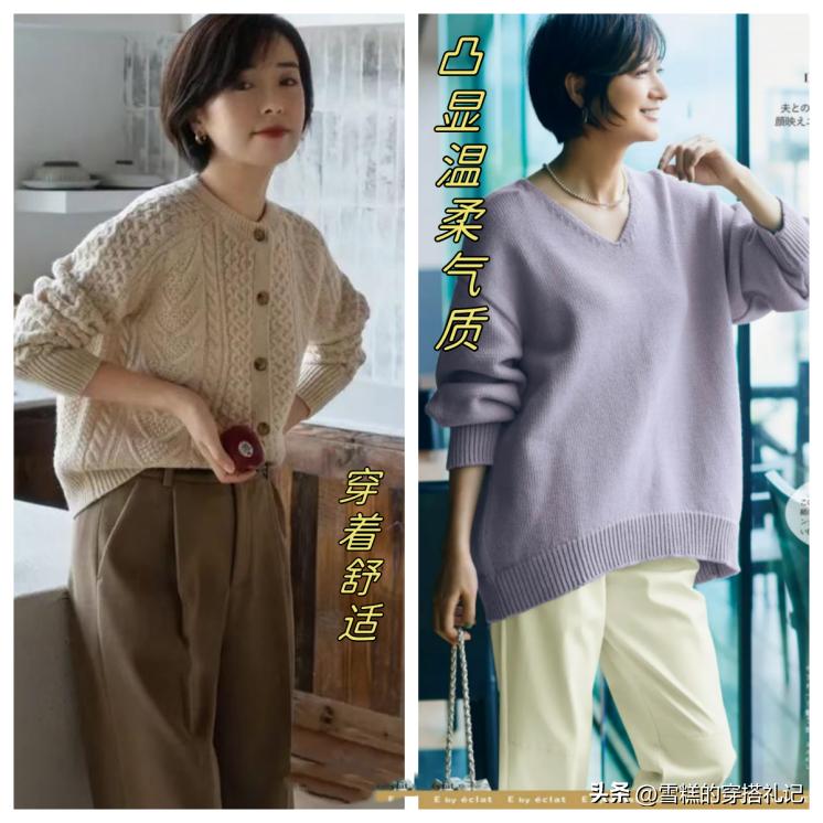 隨着年紀的增長,我們對於事物和世界的看法會越來越包容。因此,讓自己散發出溫柔的氣質也是一種優雅的魅力體現。而奶奶衫和奶奶褲都採用柔軟的材質,給人特別舒適的穿着感受。並且非常適合秋季溫暖的氛圍,在搭配合理的基礎上可以給人一場視覺的盛宴哦~