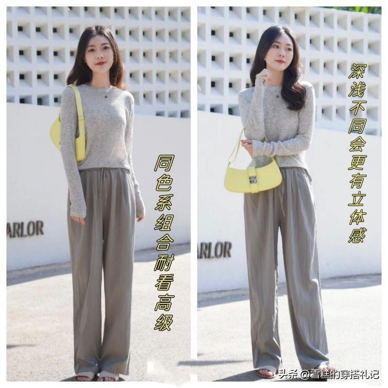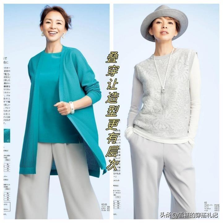 很多上了年紀的女性會選擇各種顏色的音符進行組合,而要想體現高級感的話,就要避免整體服裝的配色混亂。我們要讓自己的造型給人協調而又統一的視覺效果,可以選擇同色系的搭配方案。例如一件淺灰色的奶奶衫和深灰色高腰設計的奶奶褲組合,既能凸顯我們的身材優勢,又讓造型簡潔而又高級。