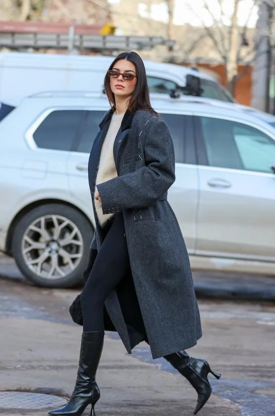 這種西裝領大衣,穿起來可是又颯又顯氣場的,加上高級灰的配色,也太耐看了,內搭一件杏色打底衫,將屬於女性的自信和魅力盡顯。搭配一雙黑色靴子,不僅休閒幹練,還能讓你穿出帥氣瀟灑的氛圍感。
