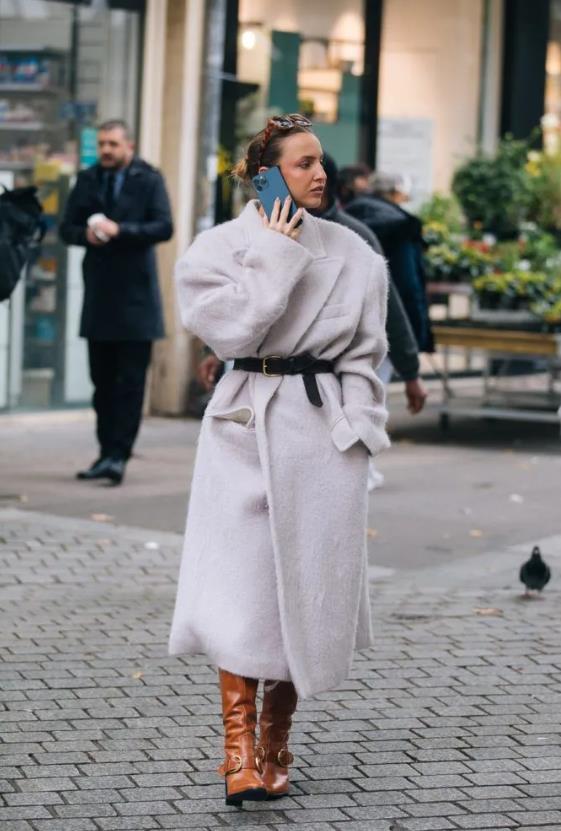 在寒意十足的秋冬,真的是挺喜歡這種寬大版型的長大衣,穿起來可太顯瘦和藏肉了,繫上黑色腰帶進行點綴,修飾身材比例,也十分顯瘦。搭配一雙棕色靴子,就可以爲穿搭塑造出一種平衡,高級且時髦。