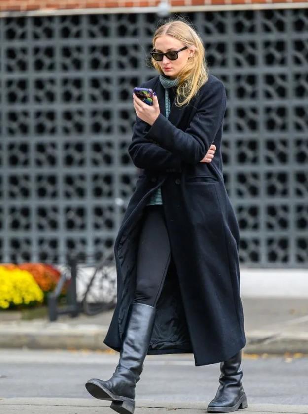 黑色的大衣,就是最百搭和耐看的了,也不挑身材,內搭一件高領針織衫,秋冬這麼穿就非常保暖了,搭配一條黑色直筒褲,就顯得更落落大方了,再加上一雙黑色靴子,讓造型多了幾分隨性和颯爽。