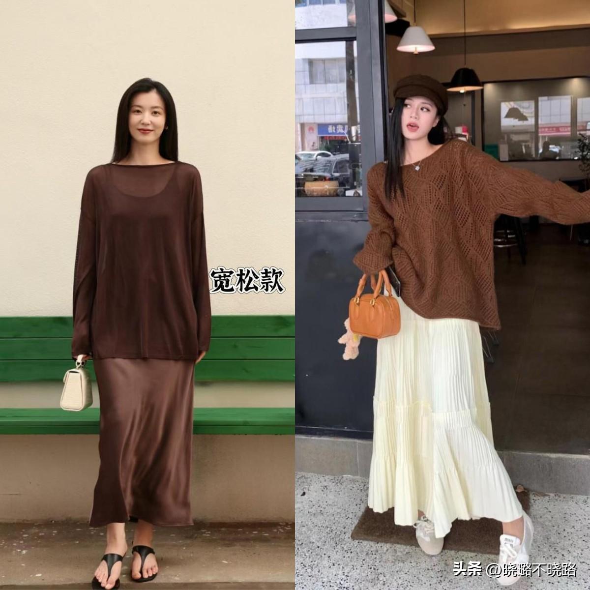 秋天本身就是充滿氛圍感的季節,所以我們在挑選大地色單品時,無需過於緊繃,嘗試一下版型寬鬆的針織罩衫,搭配長裙實在太美了!