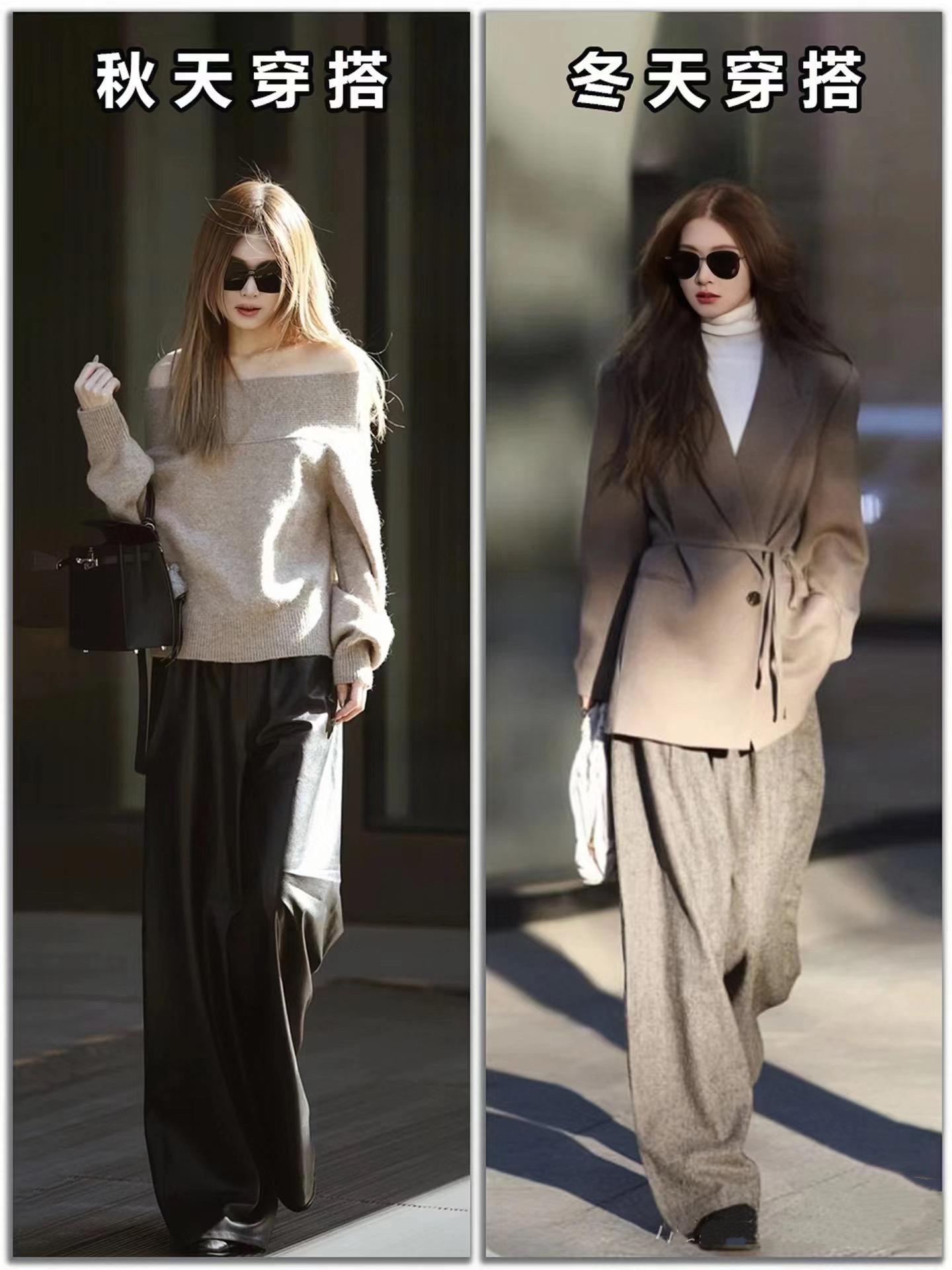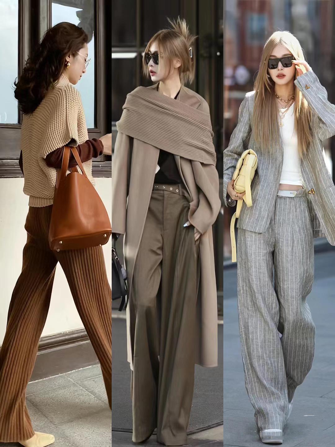 寬鬆的毛衣、闊腿褲、西服外套,都是演繹老錢風的精髓。尤其是闊腿褲,可以選擇軟糯且垂順的面料,很舒適也很高級。