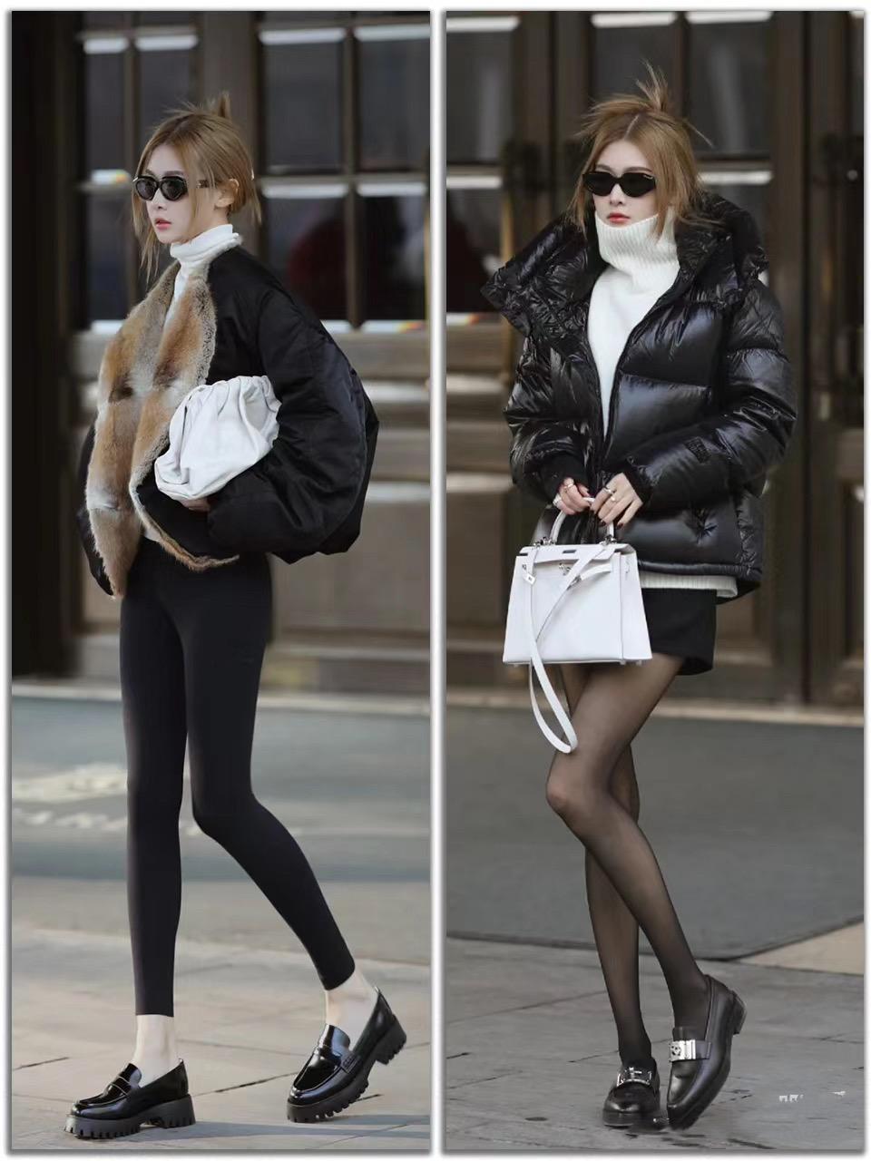 一條瑜伽褲來搭配寬鬆的毛絨外套,真的是超顯腿長。瑜伽褲配厚底樂福鞋,絲毫沒有誇張感。老錢風穿搭,也可以帶一點小性感,更惹眼。