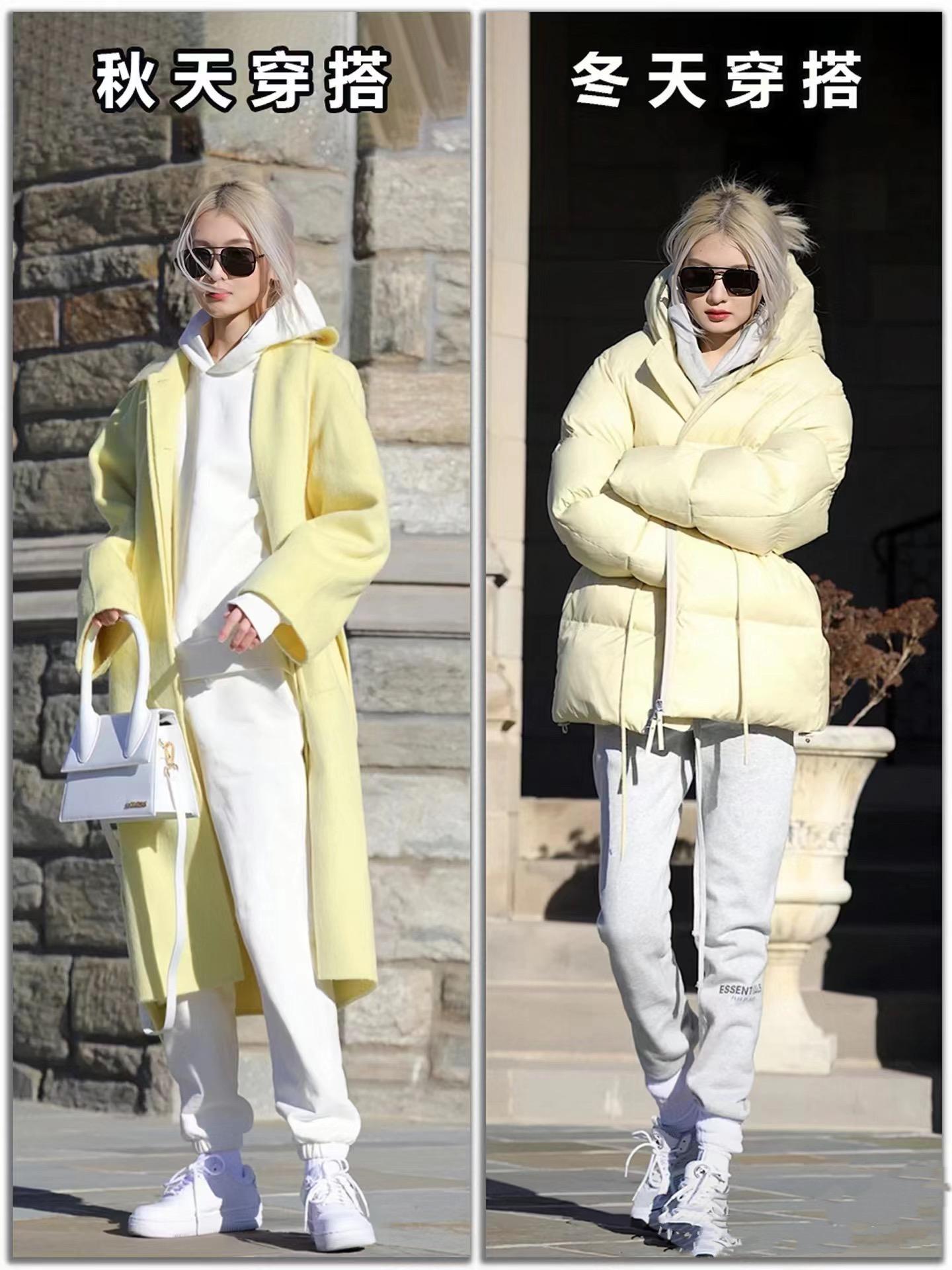白色衛衣+運動褲+白色板鞋,給人一種清爽乾淨的美。秋天直接疊搭鵝黃色大衣,冬天就配鵝黃色羽絨服。白色連帽衛衣,帶來休閒與活力。