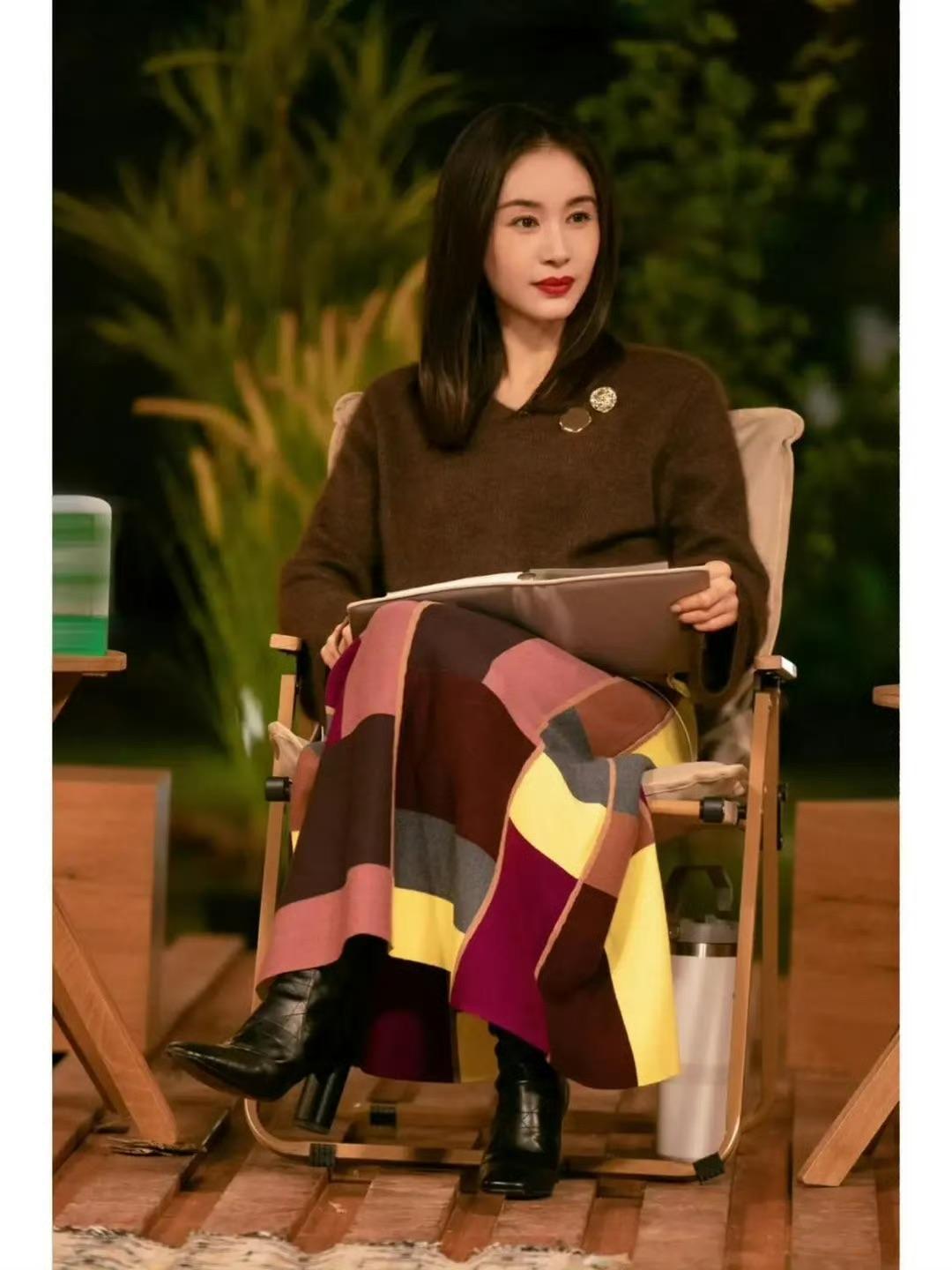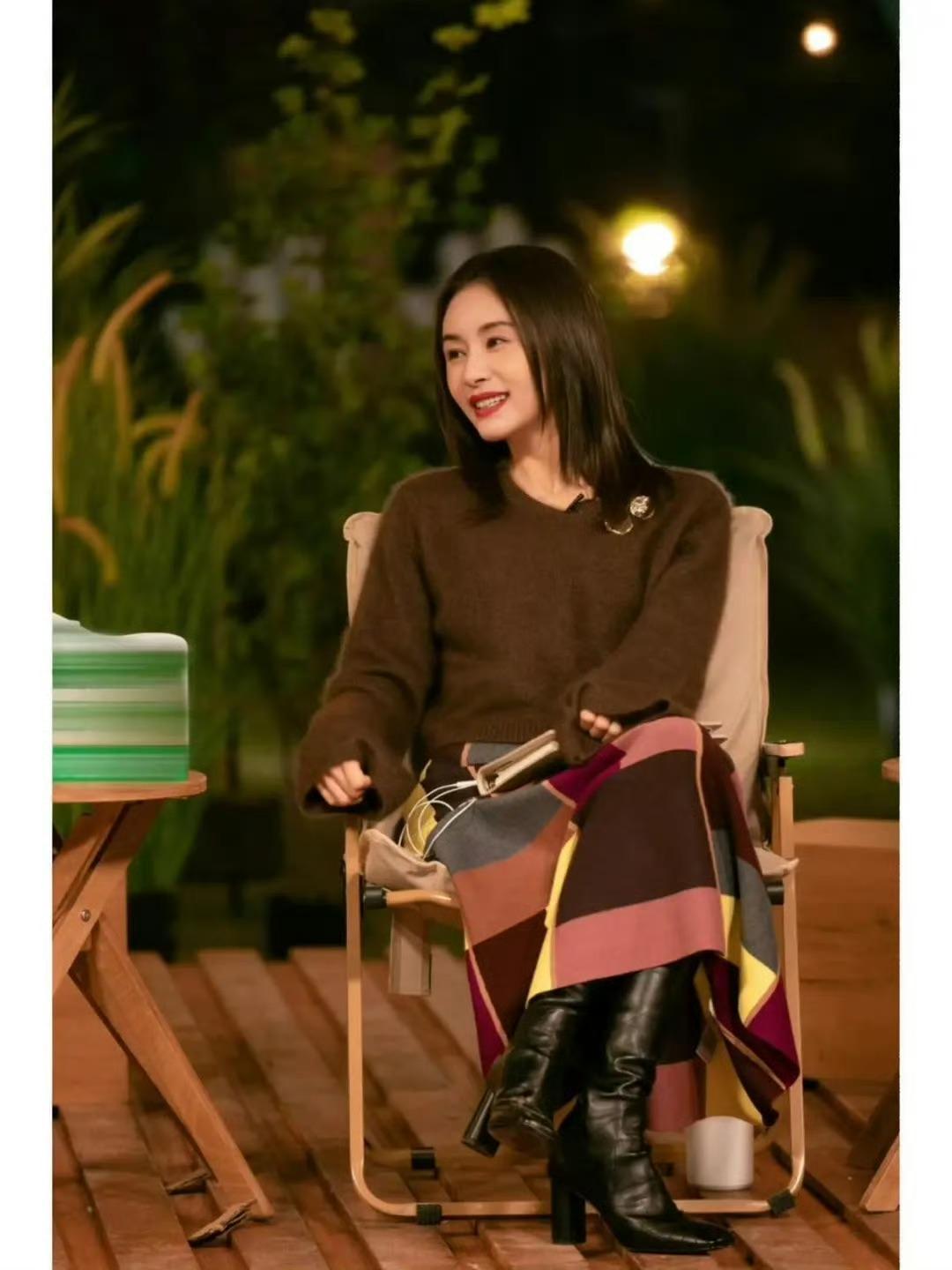 王子文帶火了美拉德新穿法:毛衣+半身裙+長筒靴,溫暖洋氣又顯高