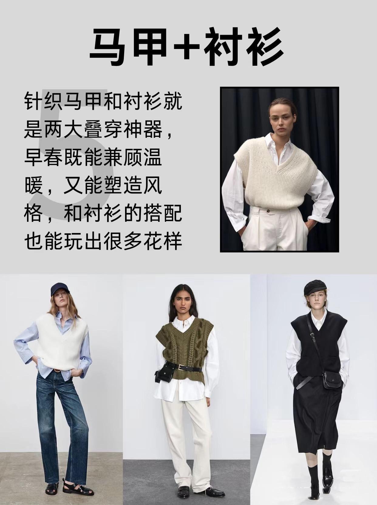 針織馬甲+襯衫,在秋天裏也是絕妙的搭配。針織馬甲可塑性非常強,初秋可以直接配白襯衫穿,天冷的時候,可以疊搭一件外套,能從初秋穿搭深冬。