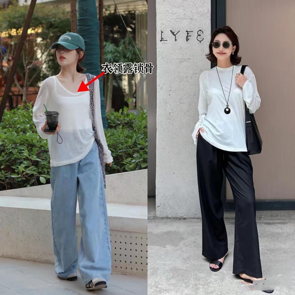 我們選擇寬鬆T恤衫的時候,儘量搭配大領口的款式,露出鎖骨線條在休閒風中多一點小性感。如果寬鬆T恤領口比較保守低調,可以嘗試佩戴毛衣鏈增強時尚氛圍。