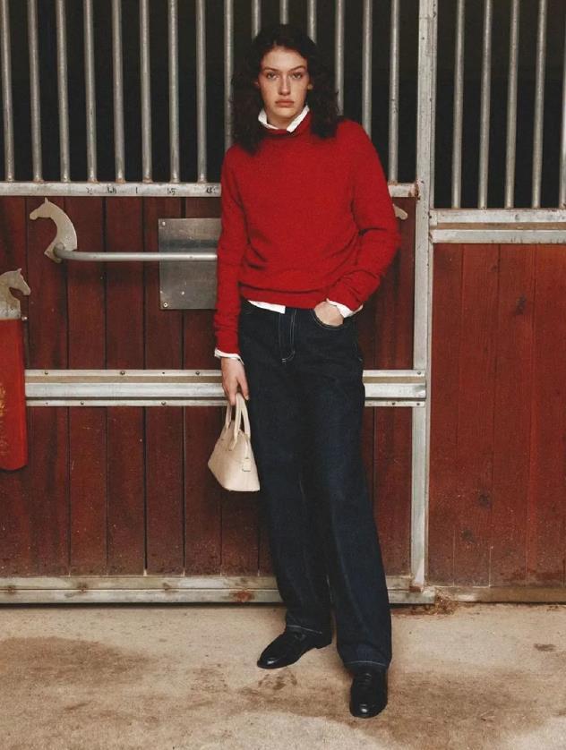 紅色套頭毛衣+白色襯衫,再搭配一條藍色牛仔褲,在秋天這樣穿很是妥當,在很多場合裏也能夠讓你展現出自信,也讓整個着裝看起來更利落,穿出獨一無一的魅力感。