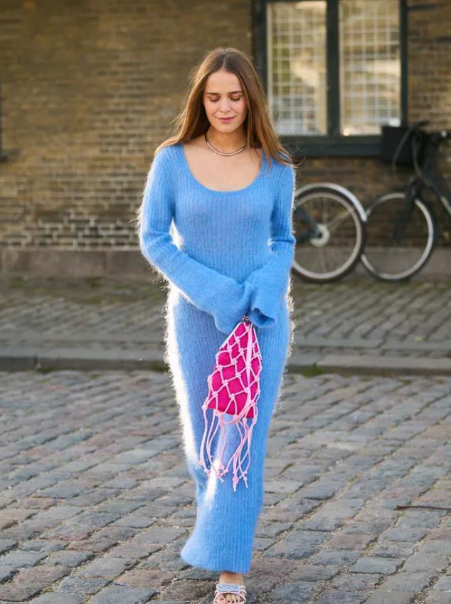 藍色針織毛衣連衣裙,你可喜歡呢?這個低飽和度的配色,實在是太襯膚色了,輕鬆穿出氣質和溫柔的感覺,也可以將你完美的身材比例呈現出來,出門的時候,搭配一雙個性涼鞋就可以。