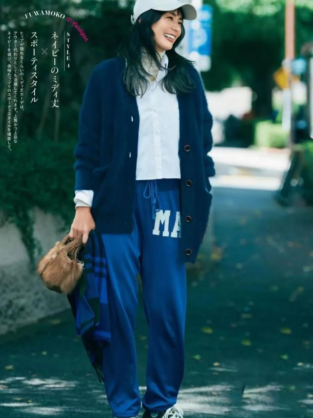 毛衣的款式和顏色都是非常多的,藍色的針織毛衣開衫,裏面疊穿一件高領打底後,再加上一件白色襯衫,這樣的搭配層次感十足,也保證了你的穿着溫度。下面搭配一條藍色運動褲,整個穿搭帶點鬆弛感又不失舒服。
