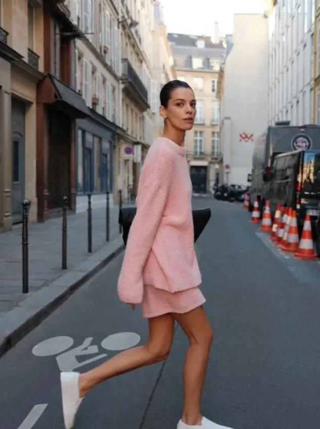粉色的套裝針織毛衣,真的是對懶人非常友好和省心,盡顯個人品味和魅力的,也能讓你看起來更加時髦,搭配一條同色的短褲,又多了幾分灑脫和隨性。腳下踩着一雙白色運動鞋,和粉色組合一起,可是很減齡呢,也很休閒。