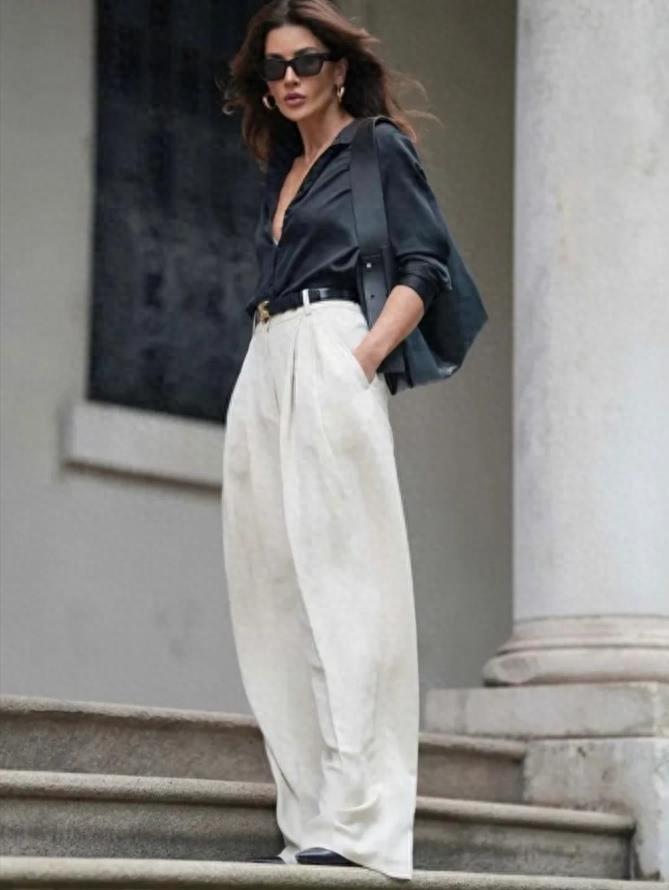 白色高腰闊腿褲,可以毫不費力就穿出高級和大女人範,加上高腰的設計,能很好拉長下身的比例和線條,在視覺上呈現出高挑感。也釋放出大女人的大方與氣質,給你十足的自信。