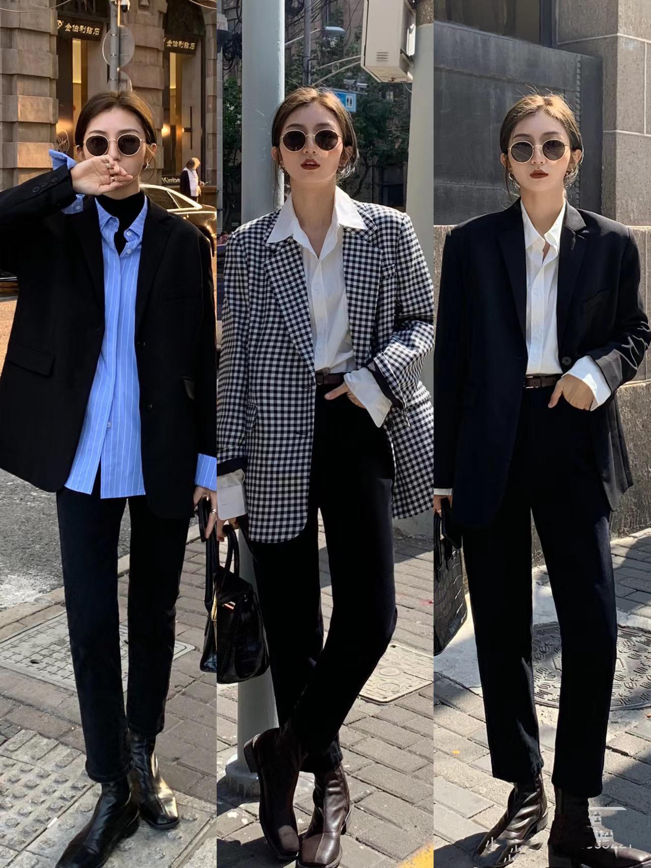 寬鬆一點的西服外套,墊肩設計、版型更挺括,配休閒風襯衫,明亮色的點綴豐富層次。直筒九分褲+及踝短靴,洋氣保暖。秀田裏的黑色直筒九分褲,不光保暖還顯腿細。