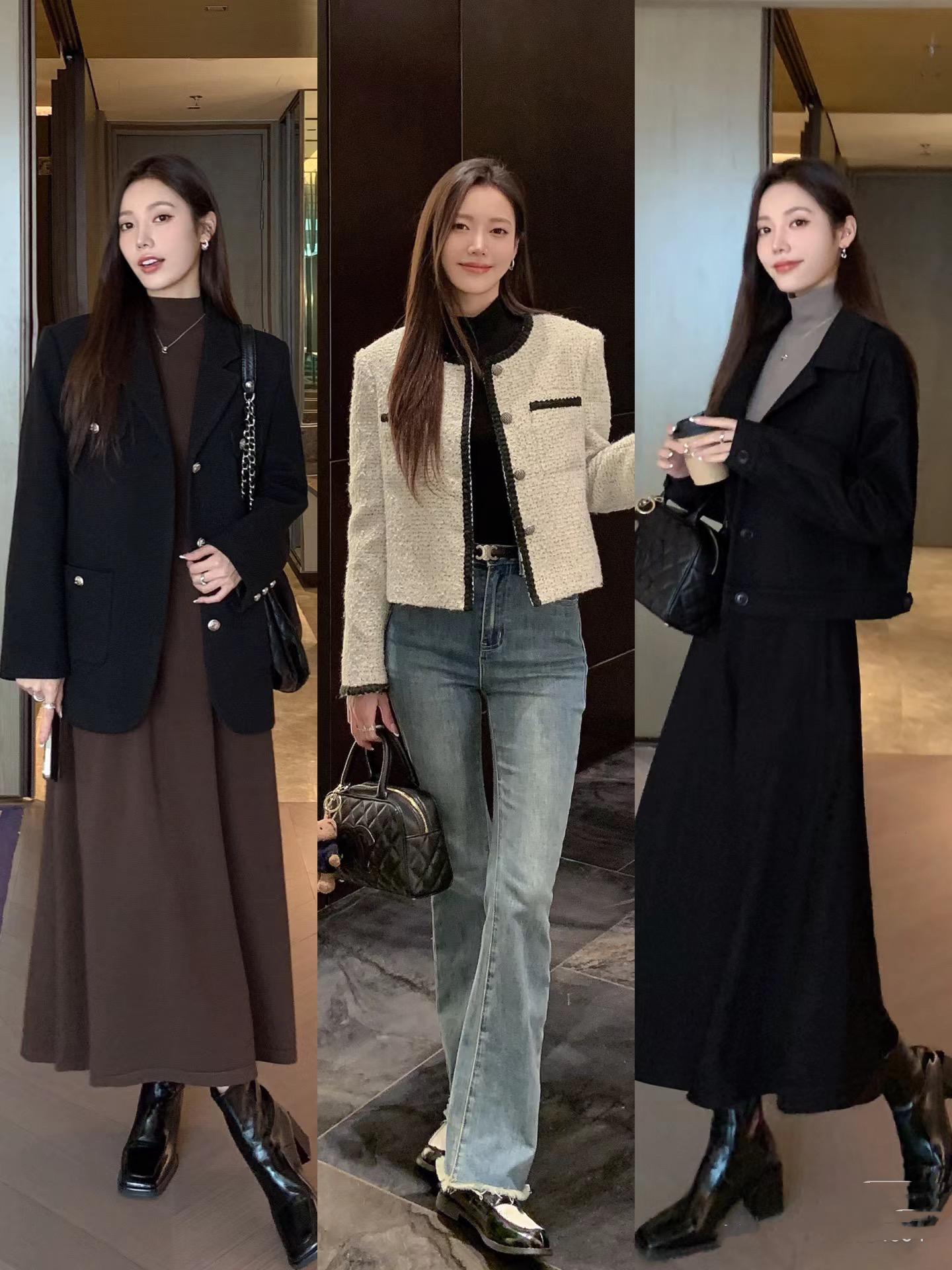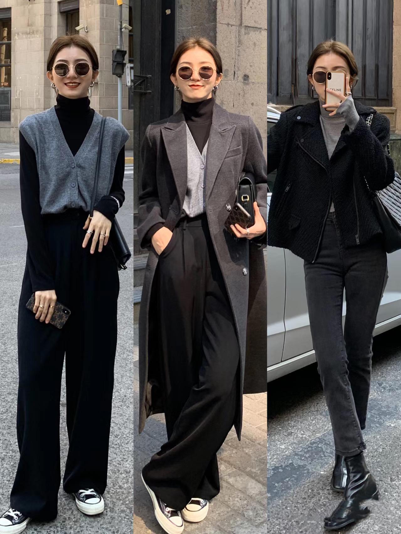 內搭顏色越深,顯瘦效果就越強。尤其是黑色打底衫,半高領的款式更保暖。覆蓋了脖頸線條、顯瘦的效果也更明顯。
