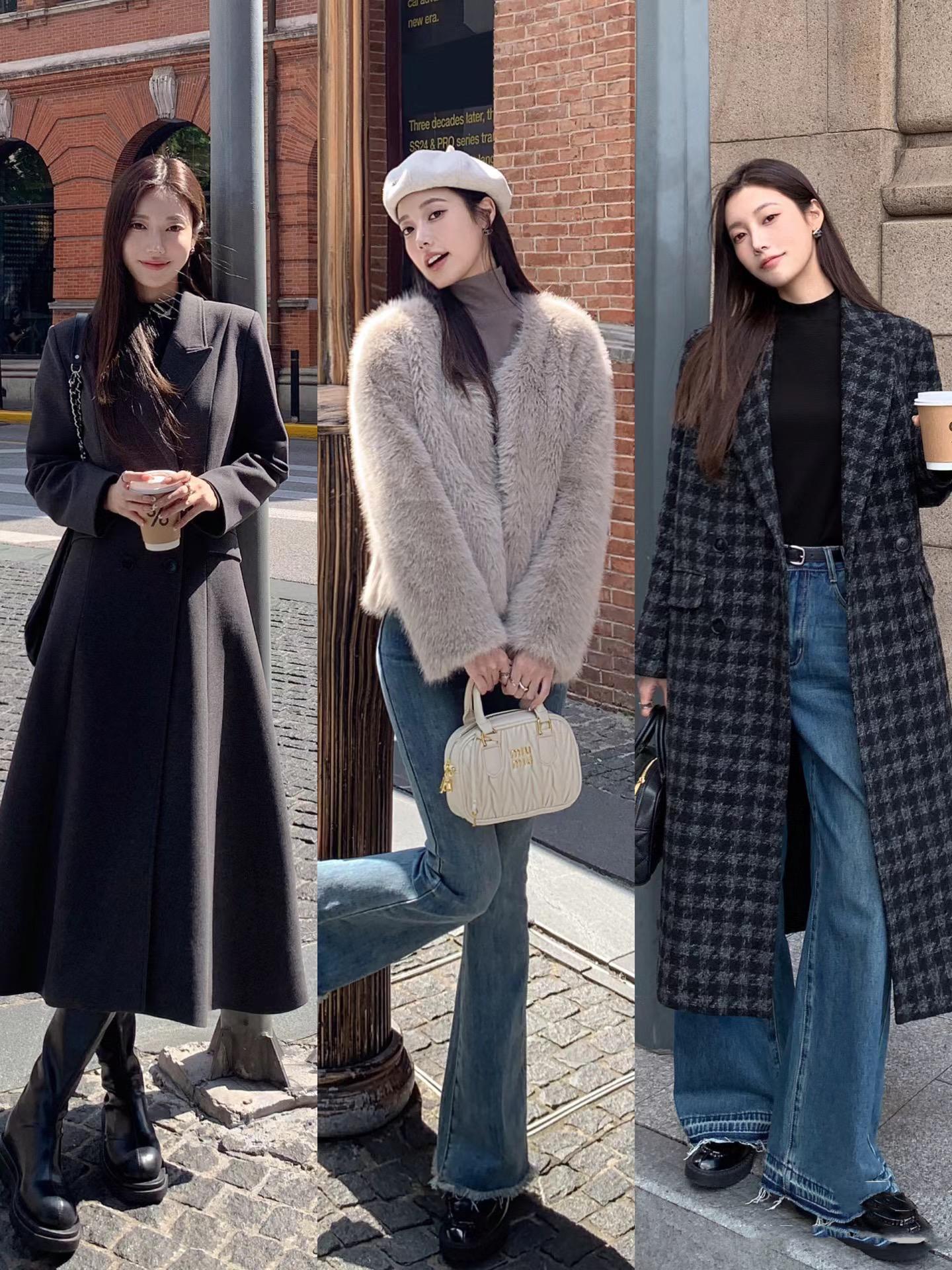 外套的話,就儘量搭配版型挺括一點的面料。比如西服、毛呢大衣、牛仔外套、甚至是羽絨服,都適合穿在秋冬季節的最外層。