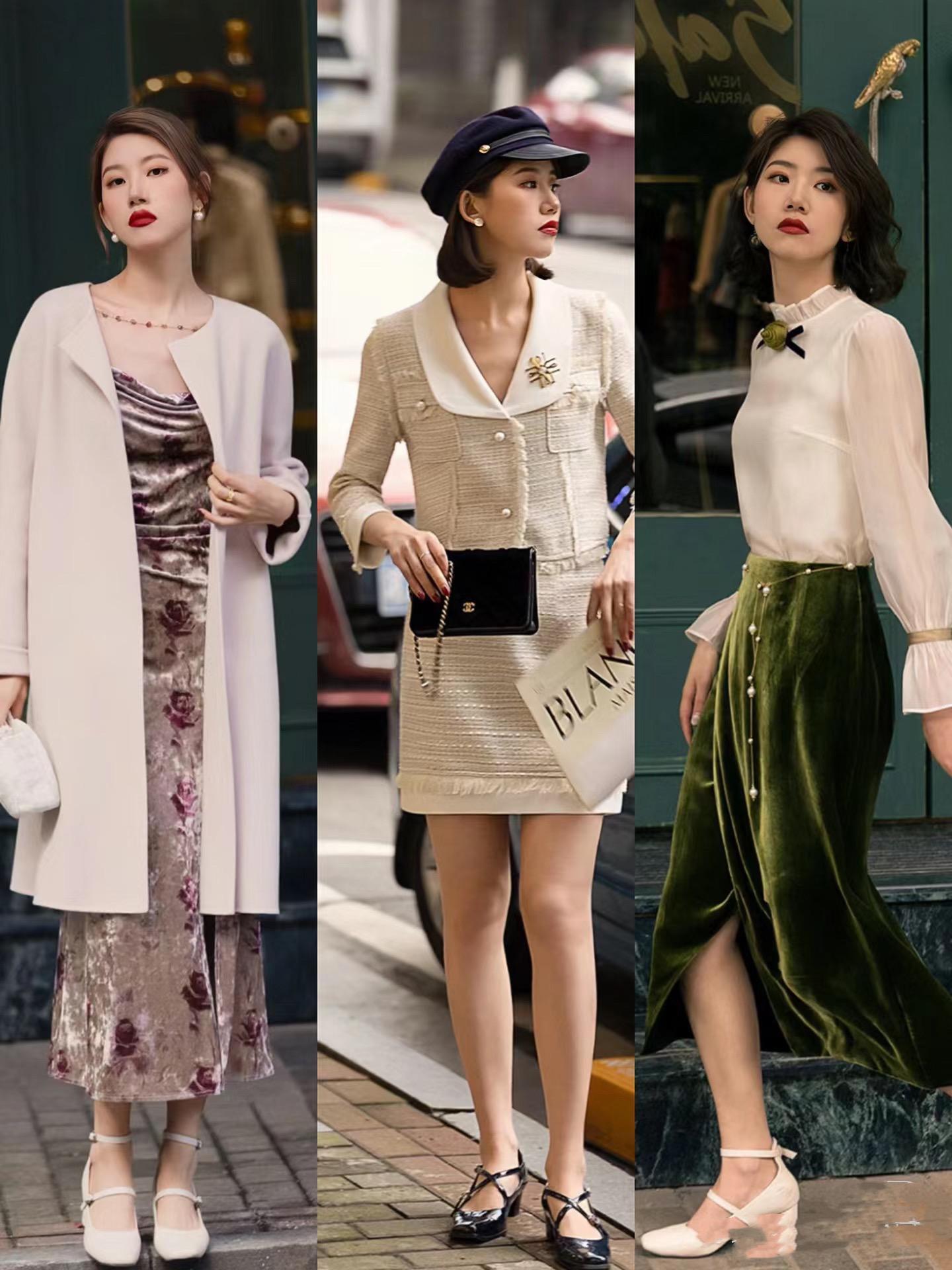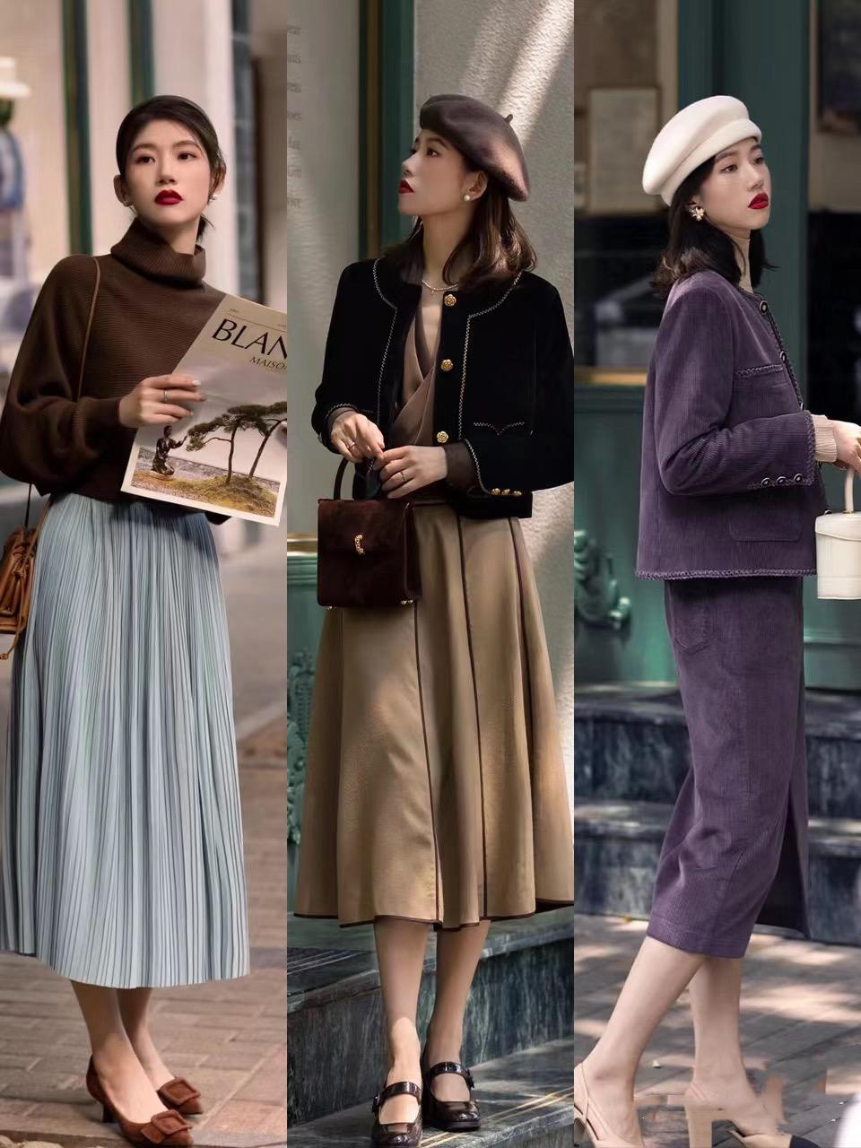 秋天裏的套裝,更凸顯氣質美。最經典的小香風套裙、或者襯衫+背心裙,都可以表現出該有的復古與高級。