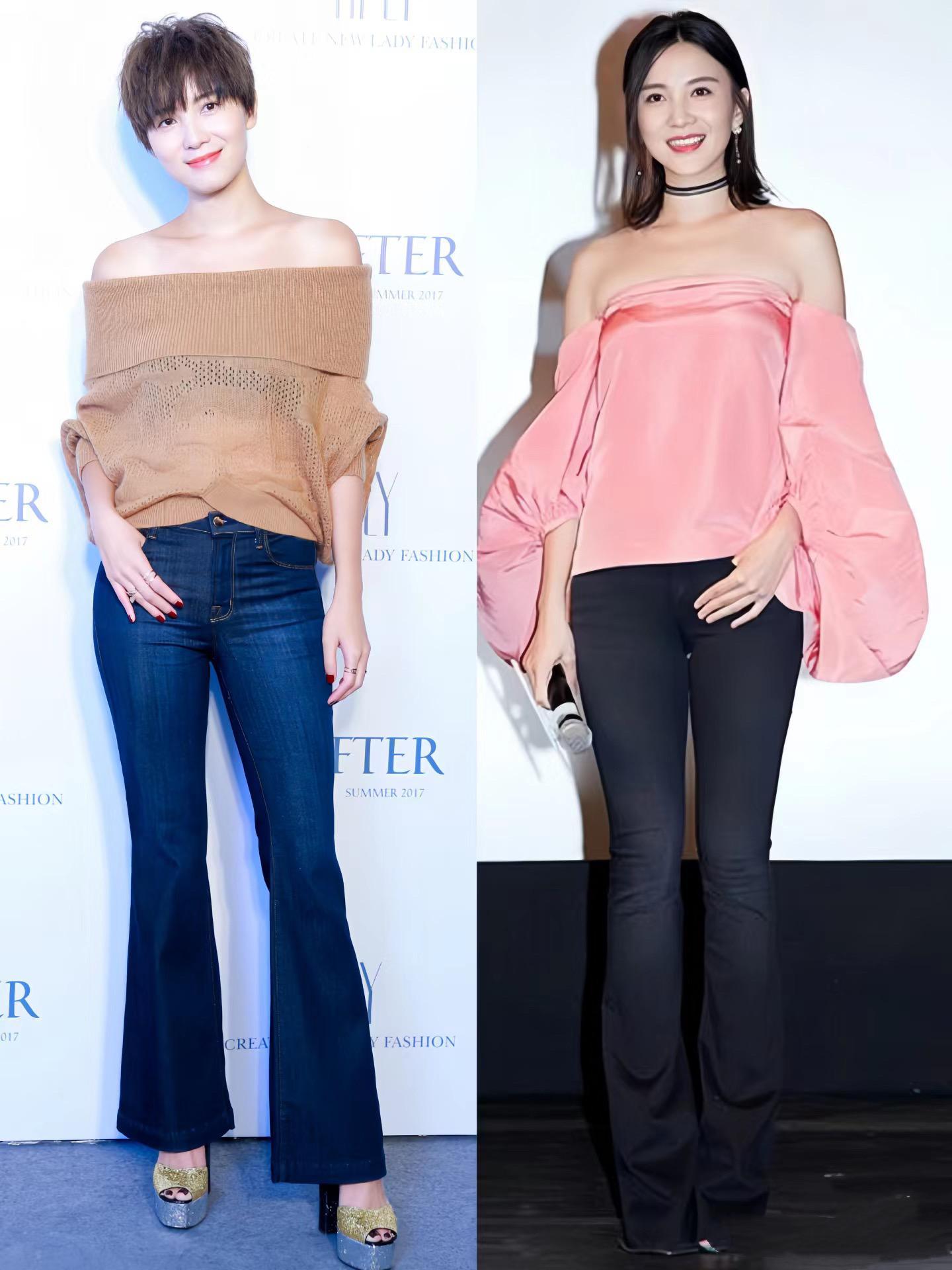 不得不說宋佳的審美無敵了,那麼時髦又超前的搭配,放在當下也是很流行。一字肩的上衣,泡泡袖的款式,很甜很美,配高腰微喇牛仔褲,時髦又顯腿長。
