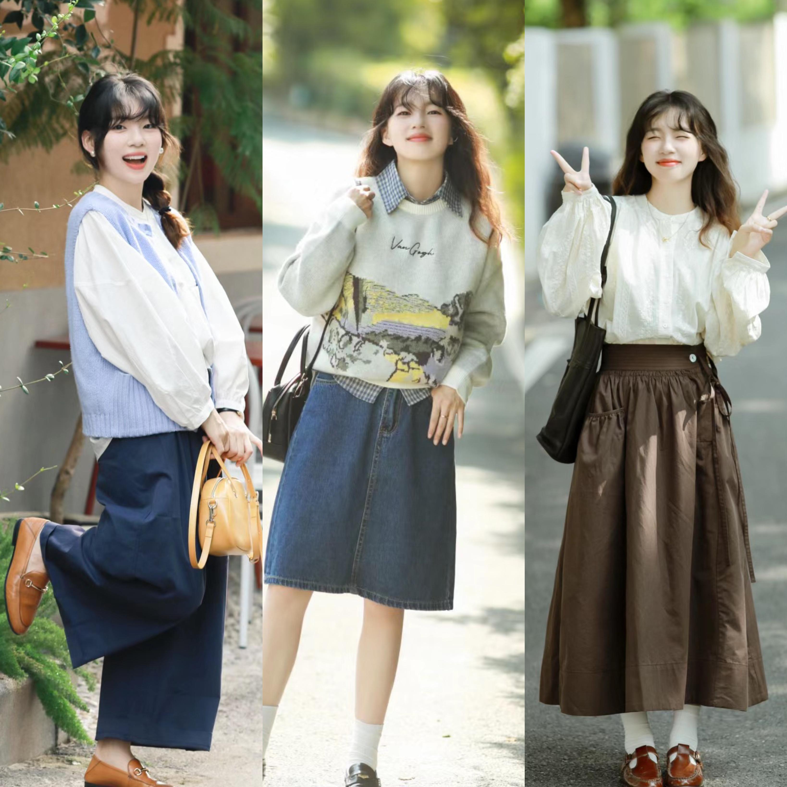 秋天裏的半身裙,儘量選擇高腰的款式,可以配A字形裙襬,遮胯顯瘦洋氣減齡。高腰半身裙搭針織衫,真的好溫柔,好顯高。