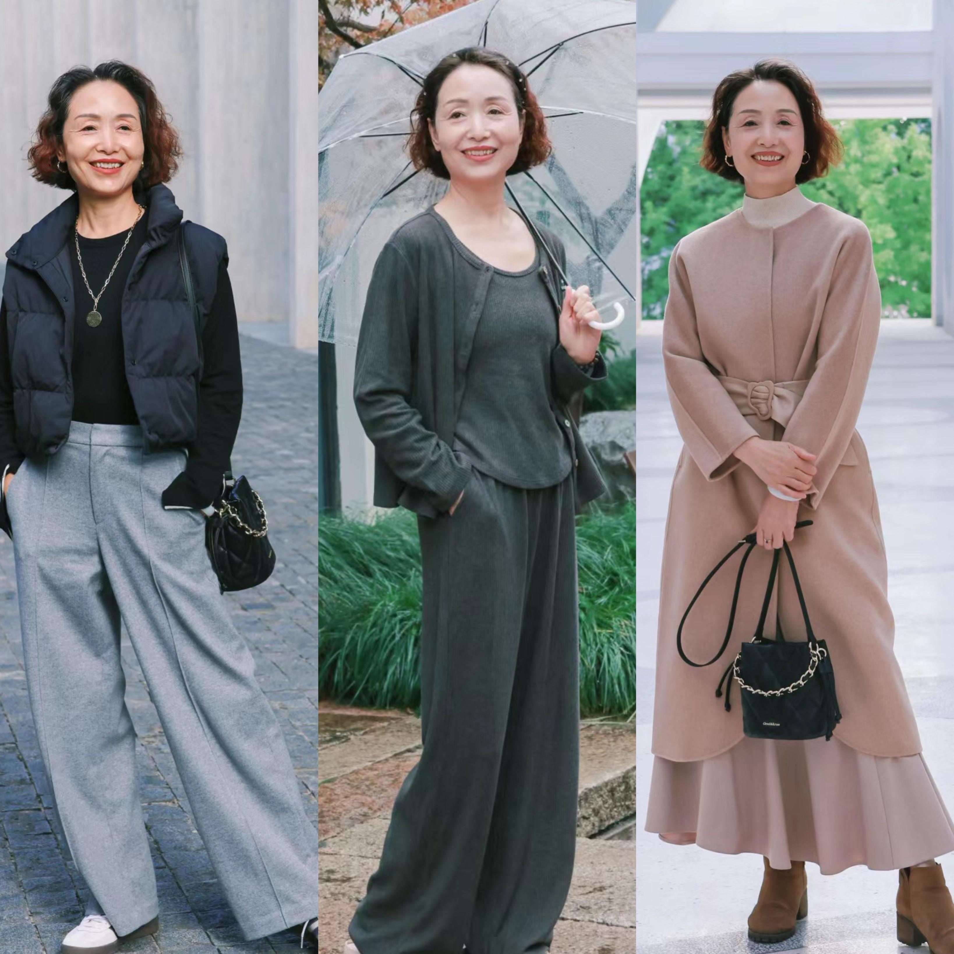 60+的女人,在選擇服裝上,儘量搭配貴一點的面料。面料越貴,保暖性、親膚性都更強。