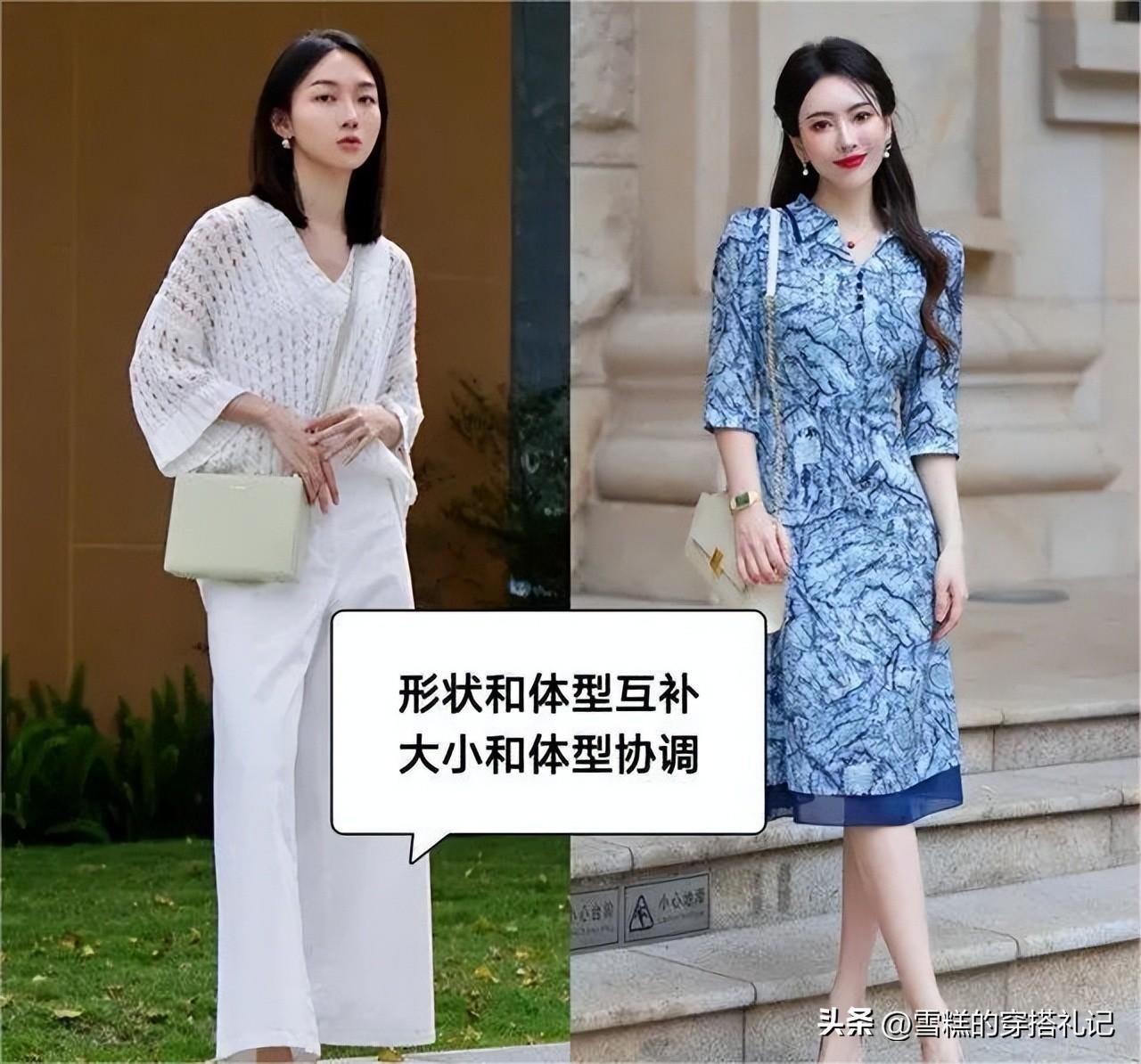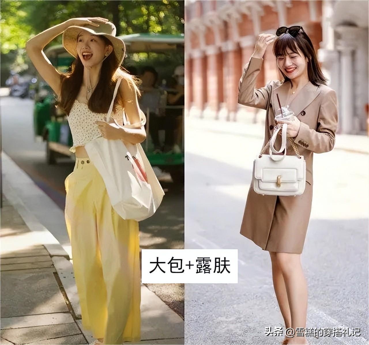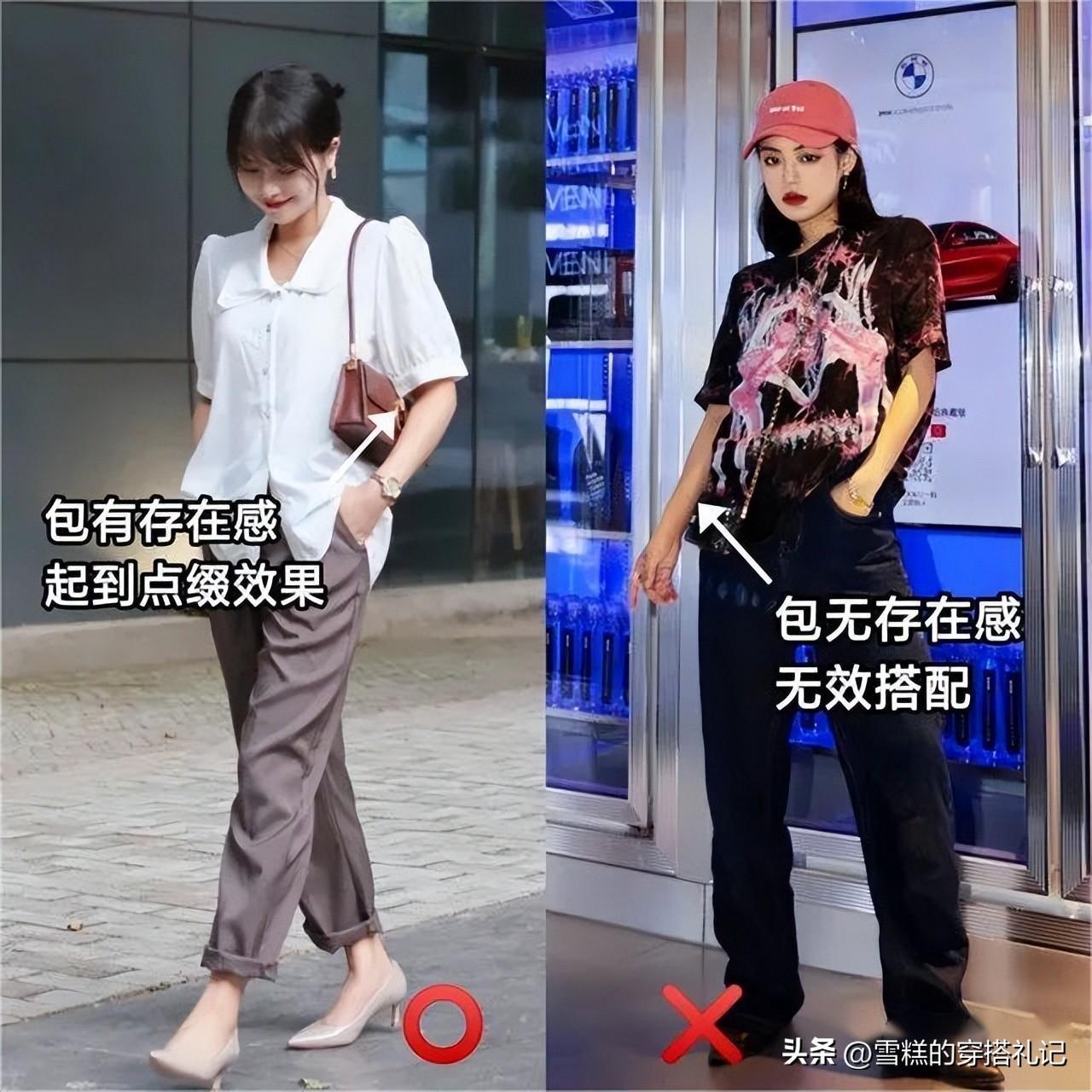 而在搭配連體褲或是腰部線條不夠突出的衣服時,則可以通過選用對比色彩且長度適宜的包包來明確劃分出腰線位置,從而在視覺上形成自然分段,不僅強化了身形的層次感,也更顯瘦長。