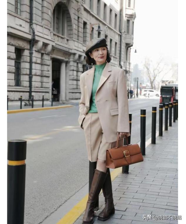 奶奶帽與西裝外套的混搭,可以碰撞出更多的吸睛點,而且這組搭配非常時尚洋氣,平時上班通勤也很好。但記得露出腳腕,打破沉悶與厚重感。在嘗試搭配五分褲的時候,儘量還是以膝上長度爲主會更好一些。