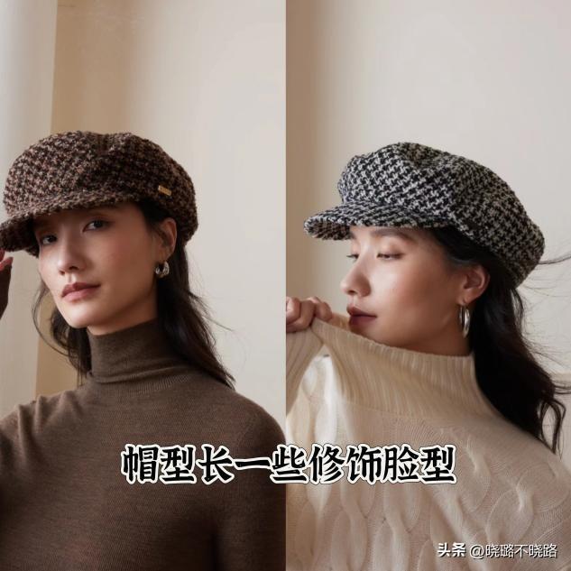 長臉的輪廓感會比較強一些,但是容易給人一種過分呆板的感覺,建議大家選擇帽型稍微長一些的樣式,營造出立體度,顯得人更加端莊大氣。比如稍微寬鬆一些得到針織帽、報童帽等等,藉助帽子的輪廓突出圓潤的頭型和流暢的面部線條。