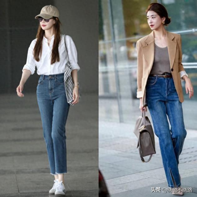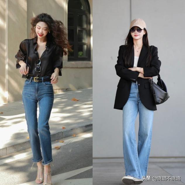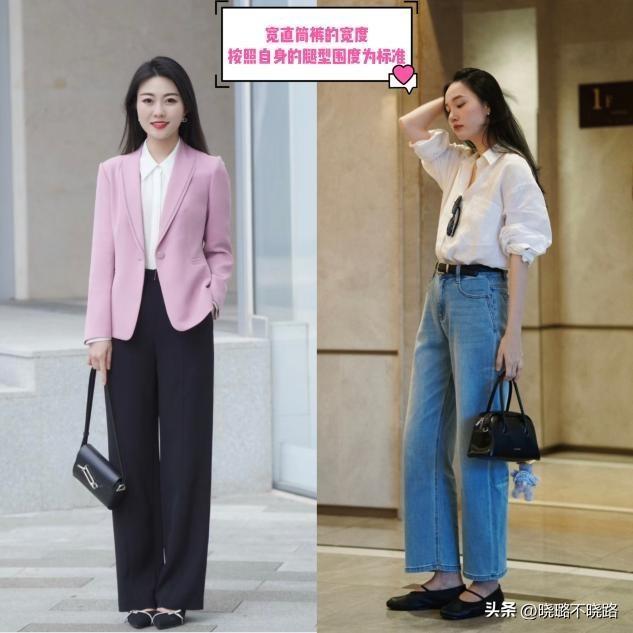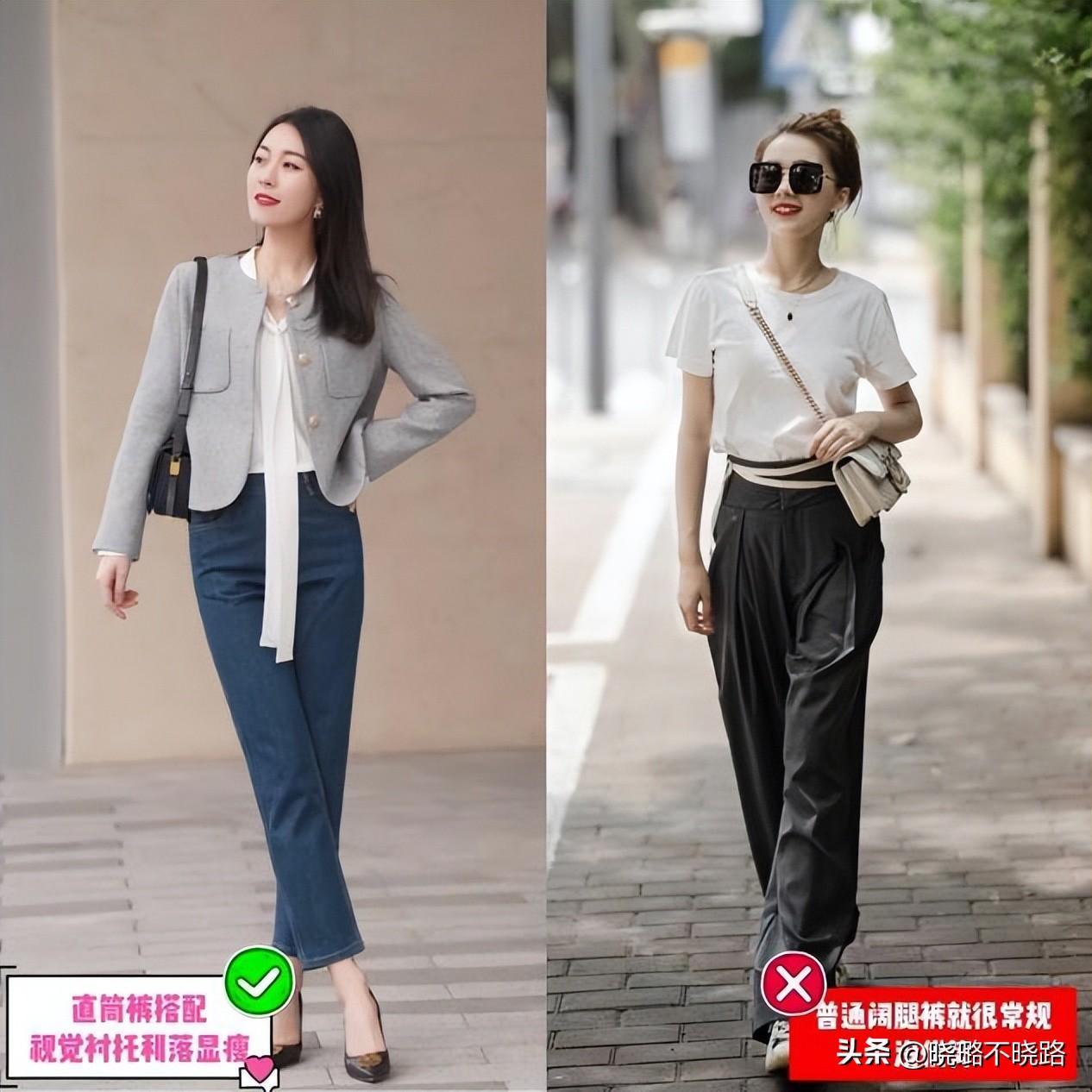 直筒褲的搭配與標準與標準的闊腿褲同時進行搭配的時候,其實更明顯的能夠看出來直筒褲所襯托出來的腿型輪廓線是非常的修直且利落感極強的同時,在對於腿型的顯瘦度上也有着非常獨特的優勢所在。