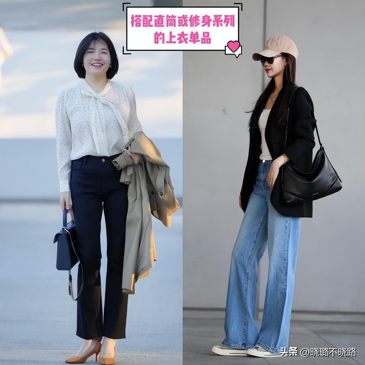 如果你是屬於小個子或者是腿部的狀態比較短一些的話,那麼建議大家在搭配直筒褲的時候,完全可以將9分的長度或者比較常規的正常長度的版型進行運用,搭配起來的時候針對於整個下半身的視覺縱向比例,它是能夠很好的彰顯和拉長腿部的視覺長度。