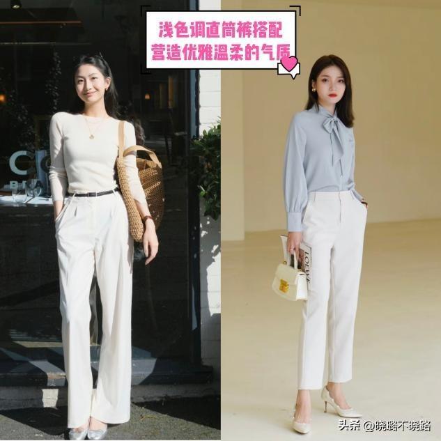 ⒊選淺色調煙管褲,利落優雅集齊搭配