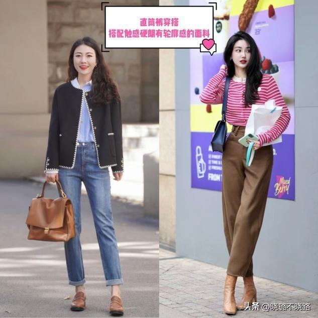 非常利落的直筒褲在進行搭配的時候,其實比較高頻率的應用場景絕對是職場穿搭當中了,所以也建議各位可以選擇小香風或者是西裝這樣的利落感上衣與其進行結合呢。