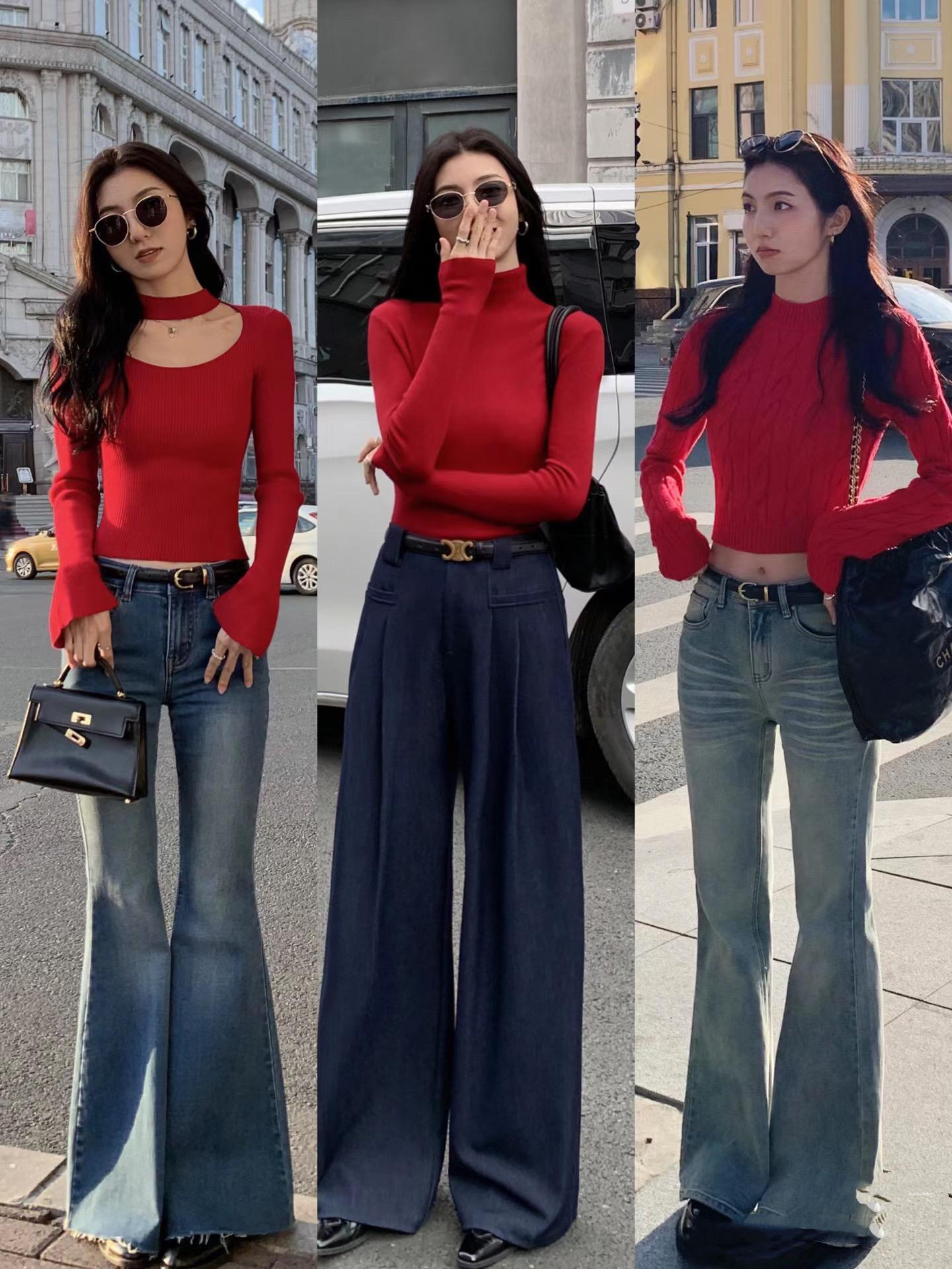修身的紅色針織衫,帶着幾分熱辣與性感,表現出一種氣血滿滿的美。秋日穿搭,這種鮮明的紅色系,也會給我們帶來時尚衝擊力。