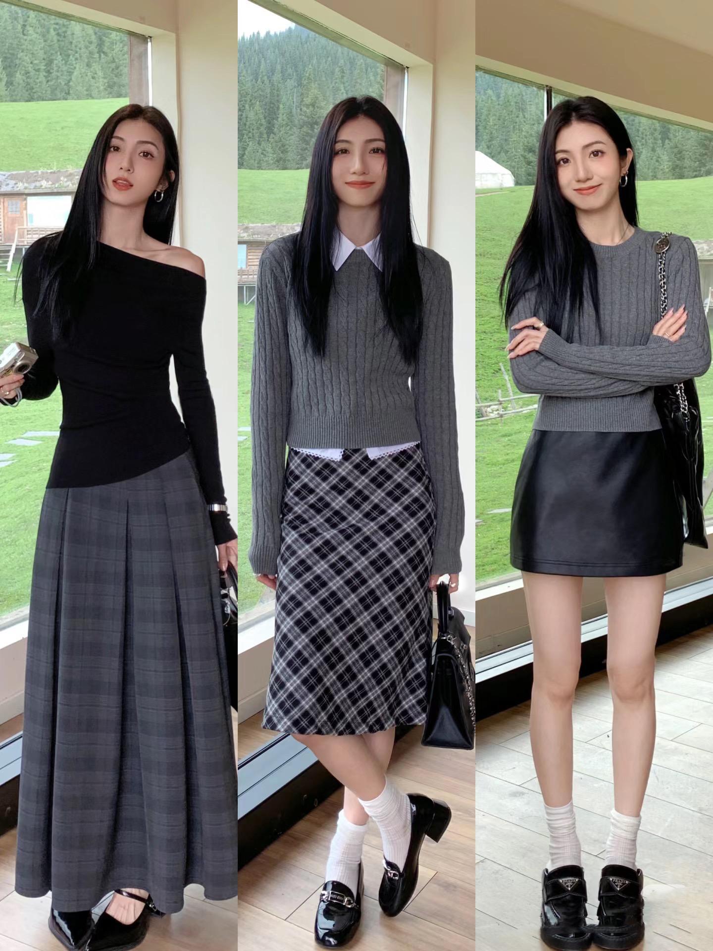就像豎坑條的灰色打底衫,帶着復古氛圍,可以配格子半身裙、也可以搭配精緻的翻領襯衫。適當修身的白襯衫作爲內搭,在復古風中多了精緻之美。