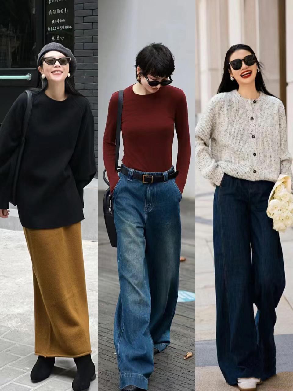 如果喜歡慵懶自在的穿搭,我們可以嘗試簡潔又時尚的組合。修身打底衫、寬鬆闊腿褲,隨便一穿就是街頭風景線。