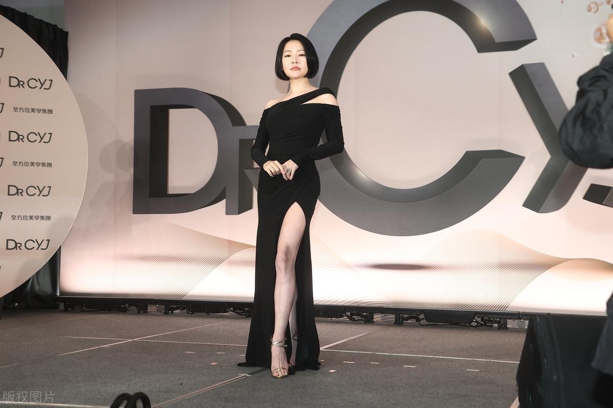 這超高的裙襬,一般人真還駕馭不了。沒有優越的比例,也沒有如此修長的大腿,誰敢穿這麼高的開衩裙呢?