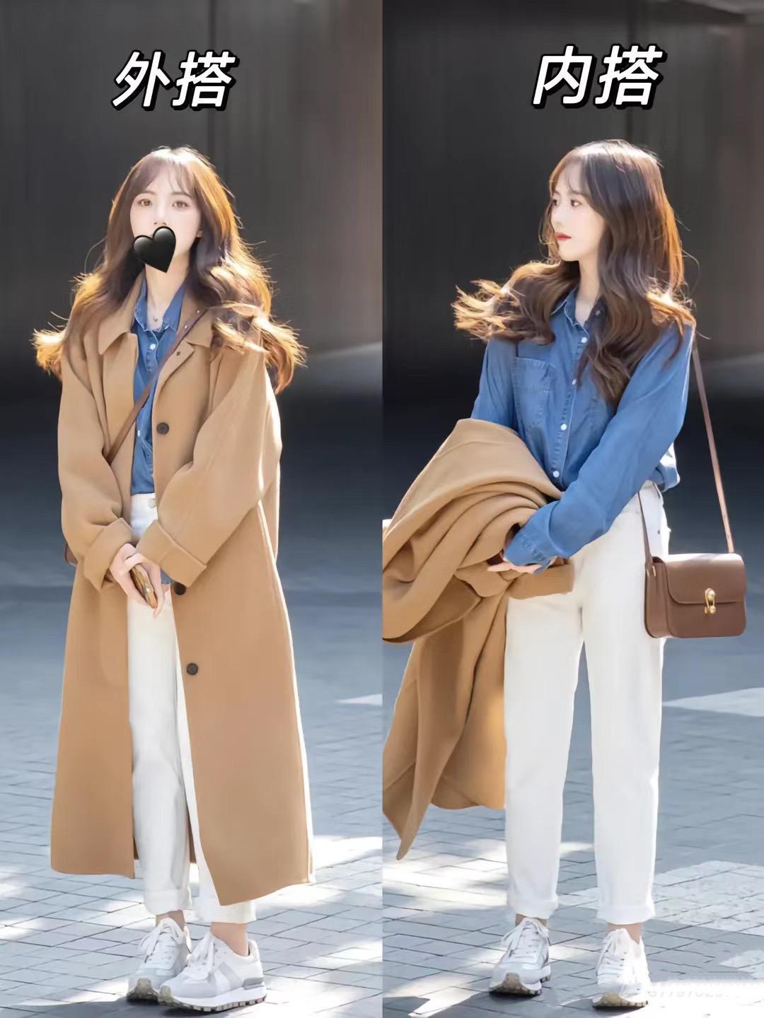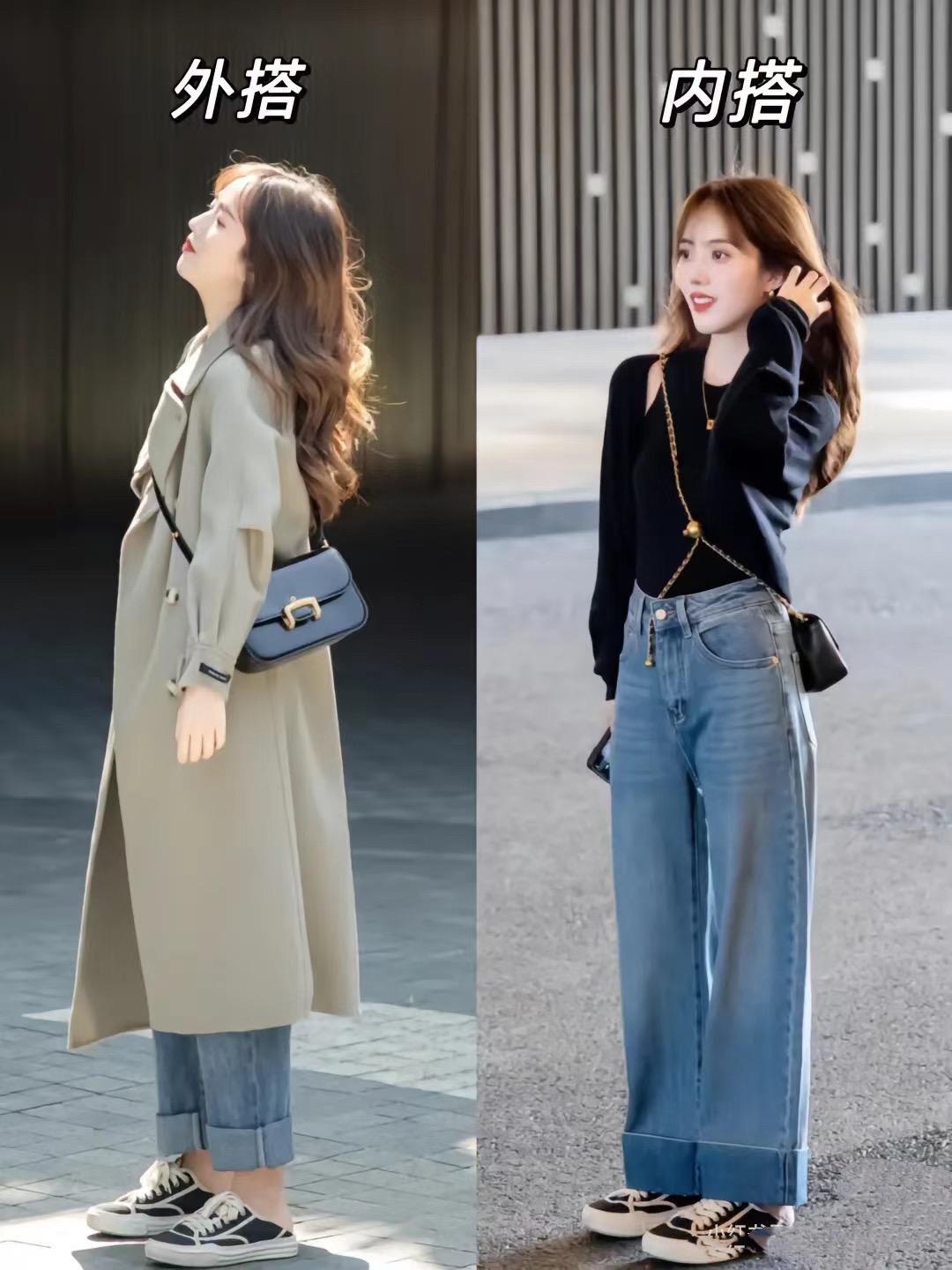 小個子的女生,更需要這種上短下長的比例來優化身材。天冷的時候,就搭一件風衣外套。長款風衣配卷邊的牛仔褲,也是利落又顯高。