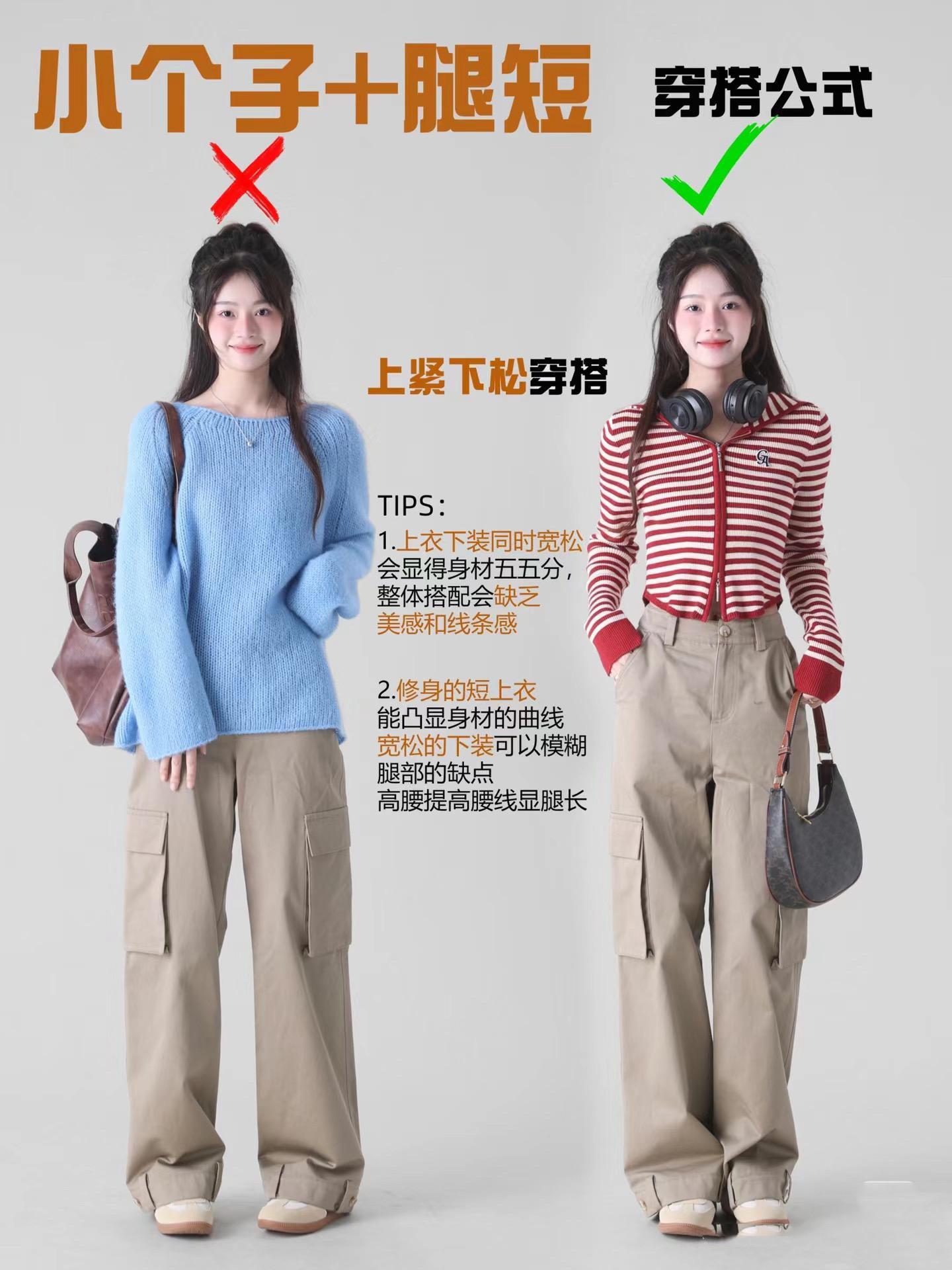 尤其是個子矮+腿短的女生,在秋天更不要亂穿衣。否則在不經意間、就會變的又醜又矮、格外土氣。